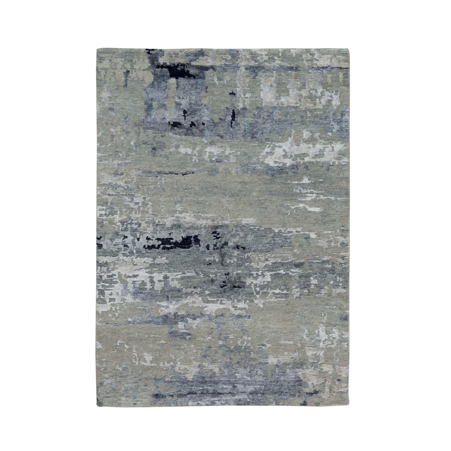 Hand Knotted Grey Transitional with Wool & Silk Oriental Rug (6'2" x 9') - 6'2" x 9'