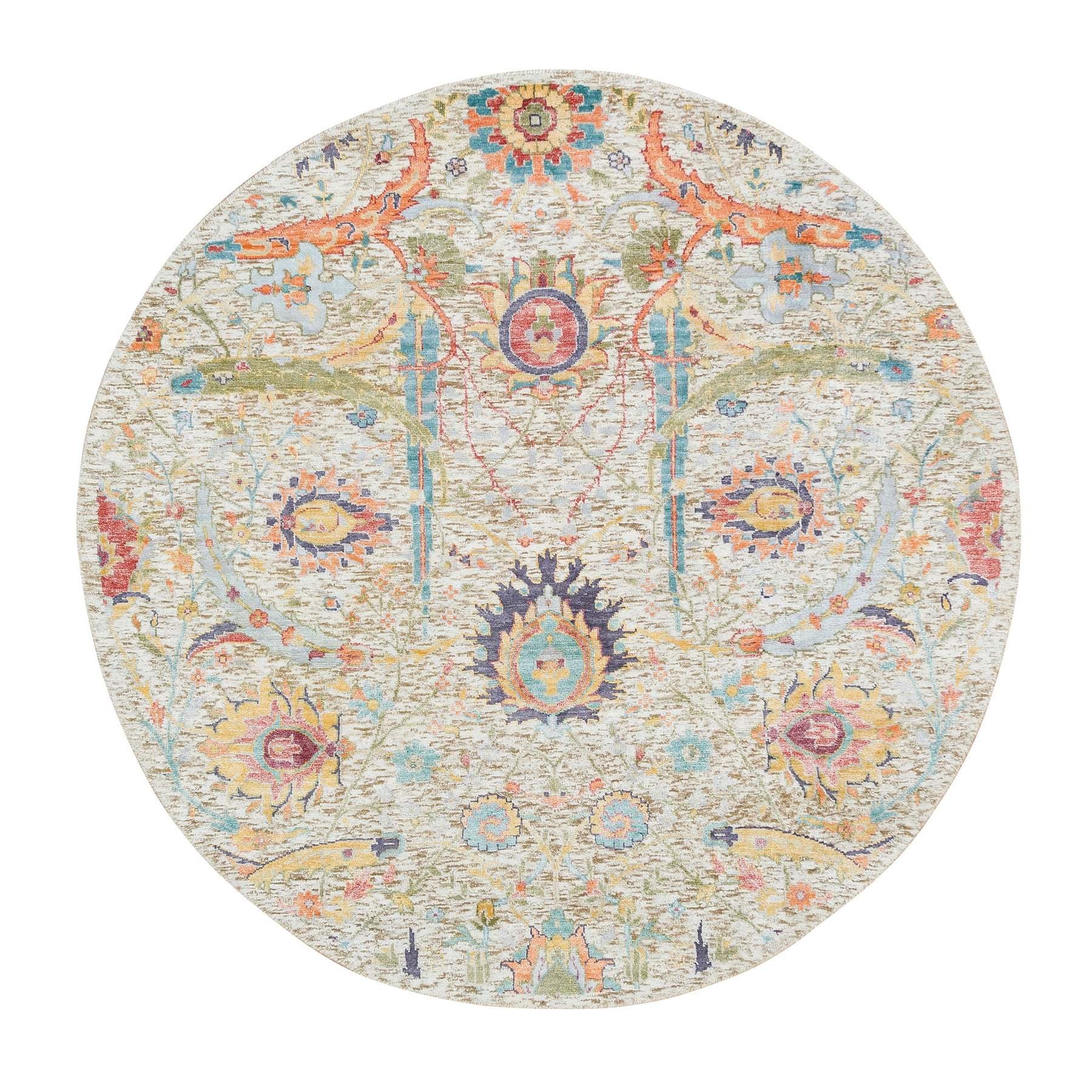 Hand Knotted Beige Transitional with Wool & Silk Oriental Rug (5'2" x 5'2") - 5'2" x 5'2"