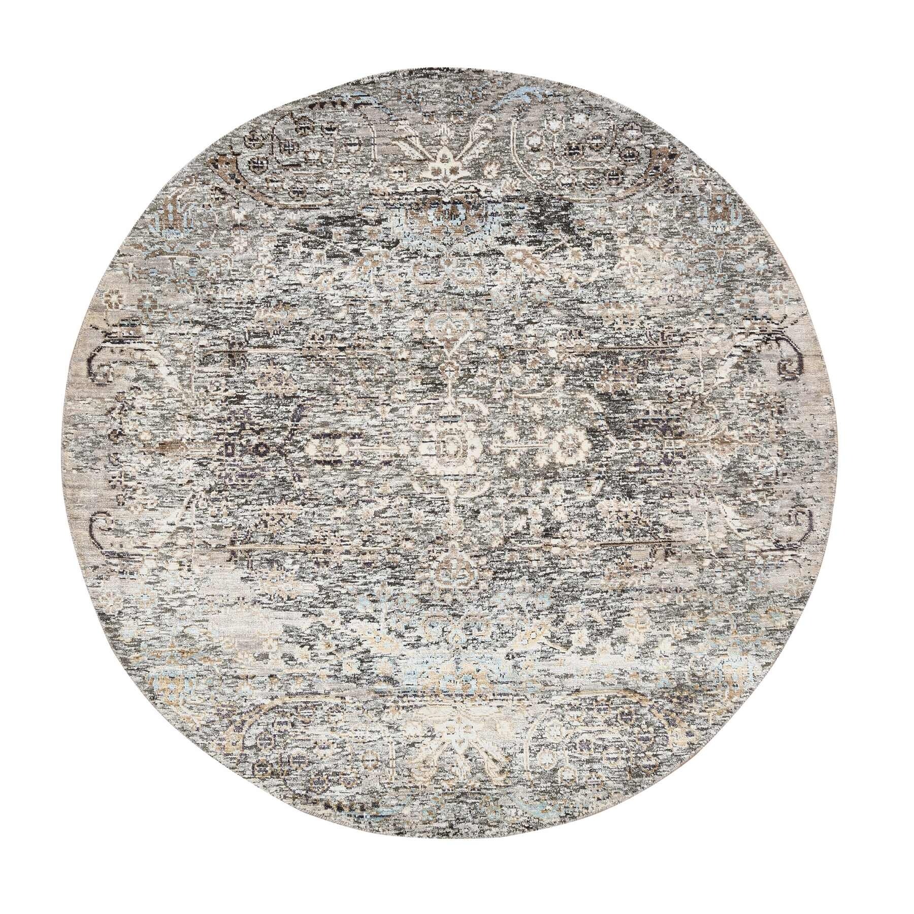 Hand Knotted Grey Transitional with Wool & Silk Oriental Rug (5' x 5') - 5' x 5'