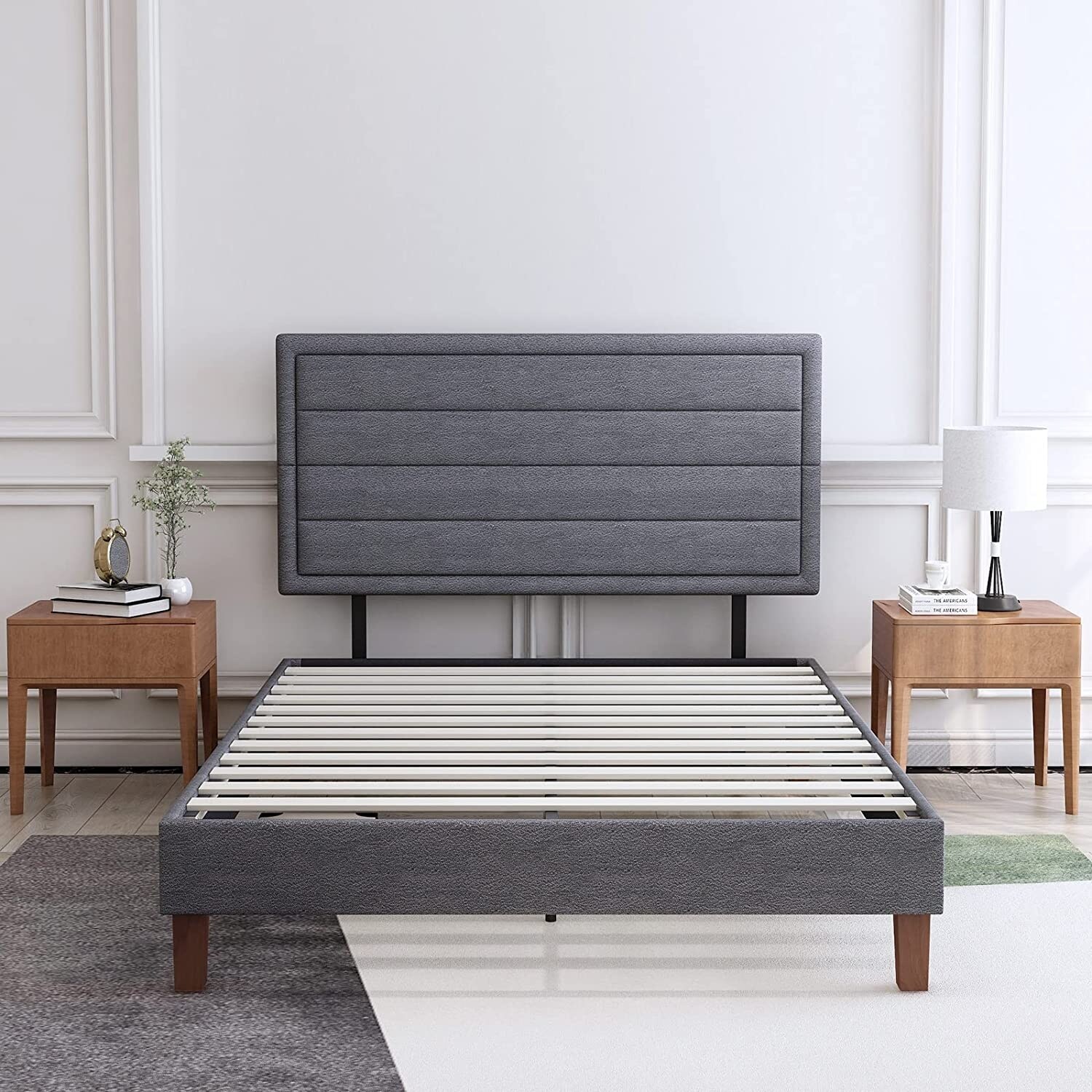 Queen Size Upholstered Platform Bed Frame with Headboard, Strong Wood Slat Support