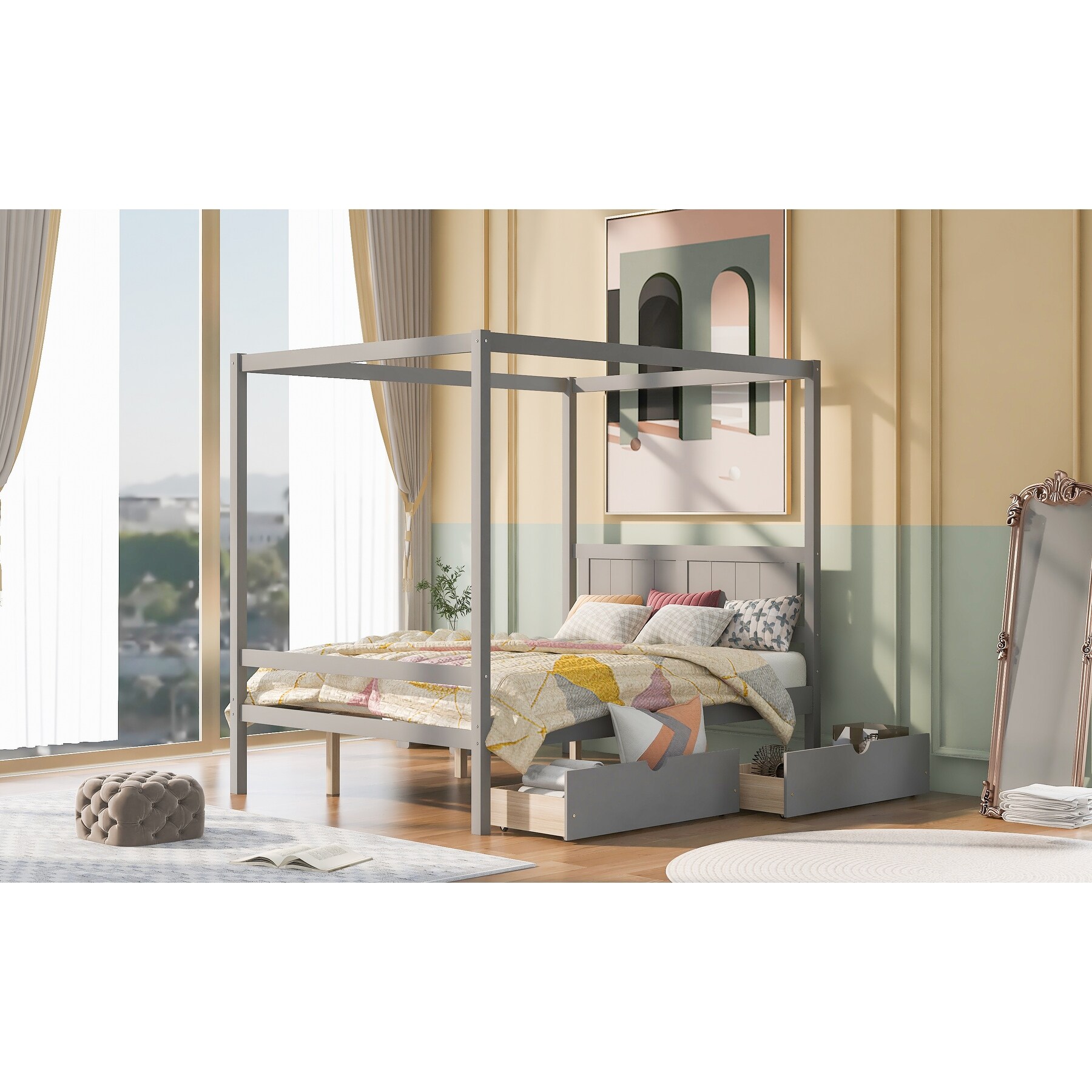 Bed with Two Drawers Full Canopy Platform Bed with Support Slats