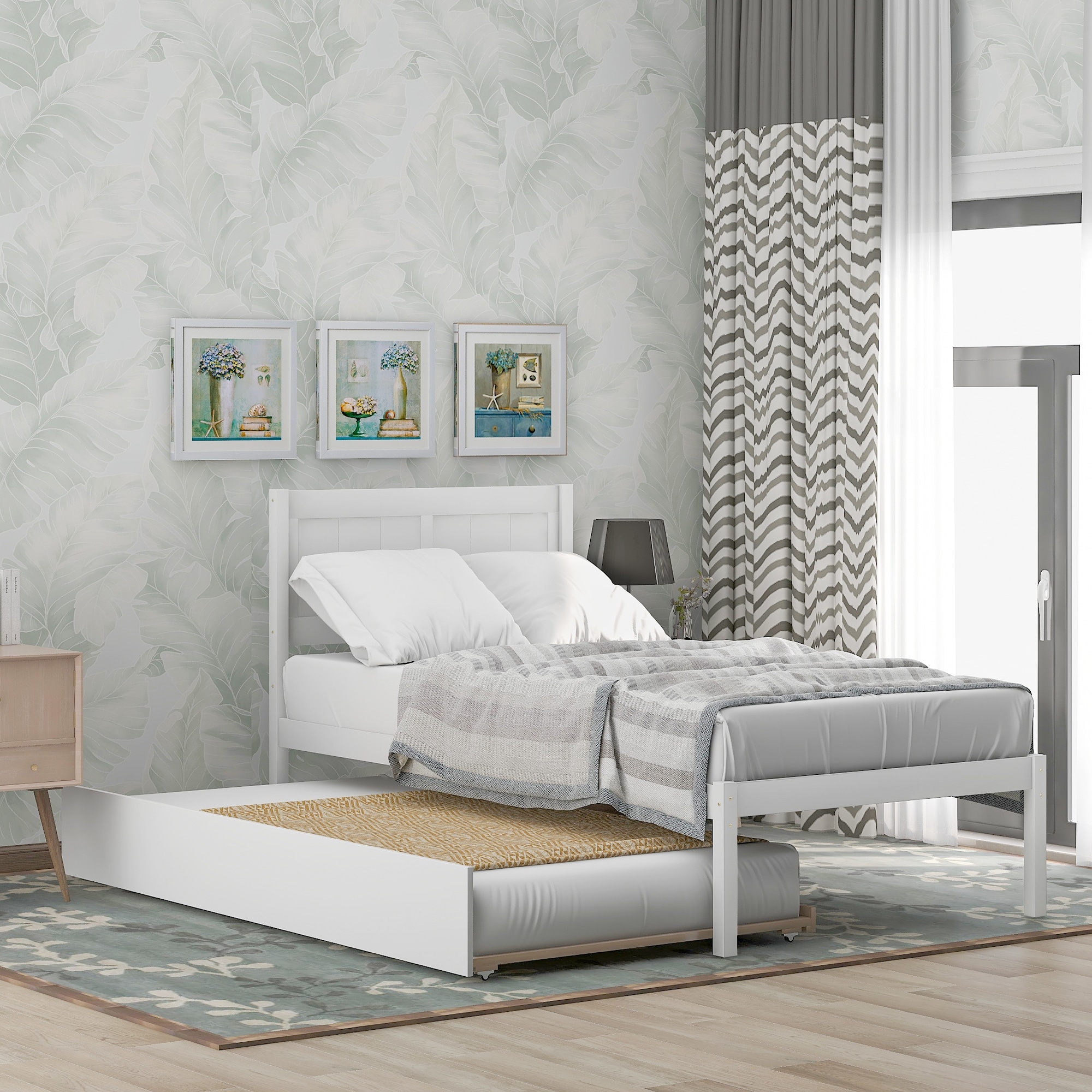 Twin Daybed w/Trundle Bed Wooden Slats Support Modern Living Daybed