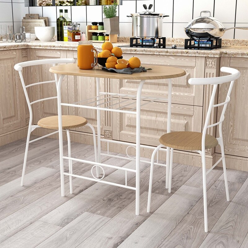 3-Piece Dining Set Wood Table and 2 Chairs for Kitchen Small Space