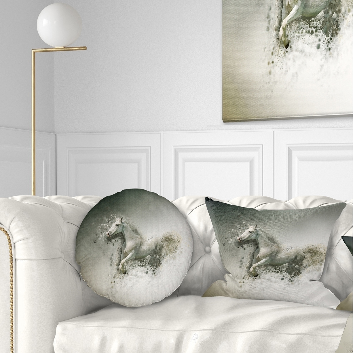 Designart 'Smart White Horse Running' Animal Throw Pillow