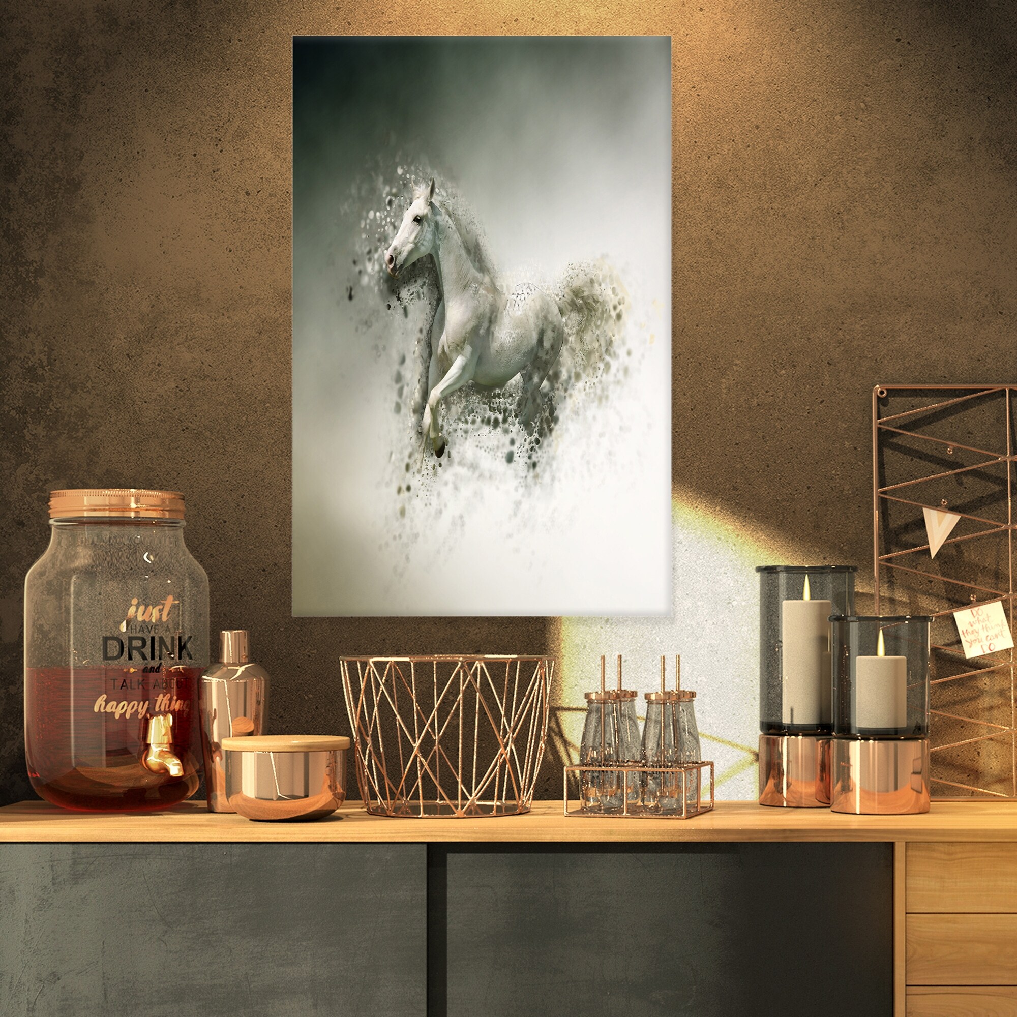 Designart "Smart White Horse Running" Large Animal Art on Canvas