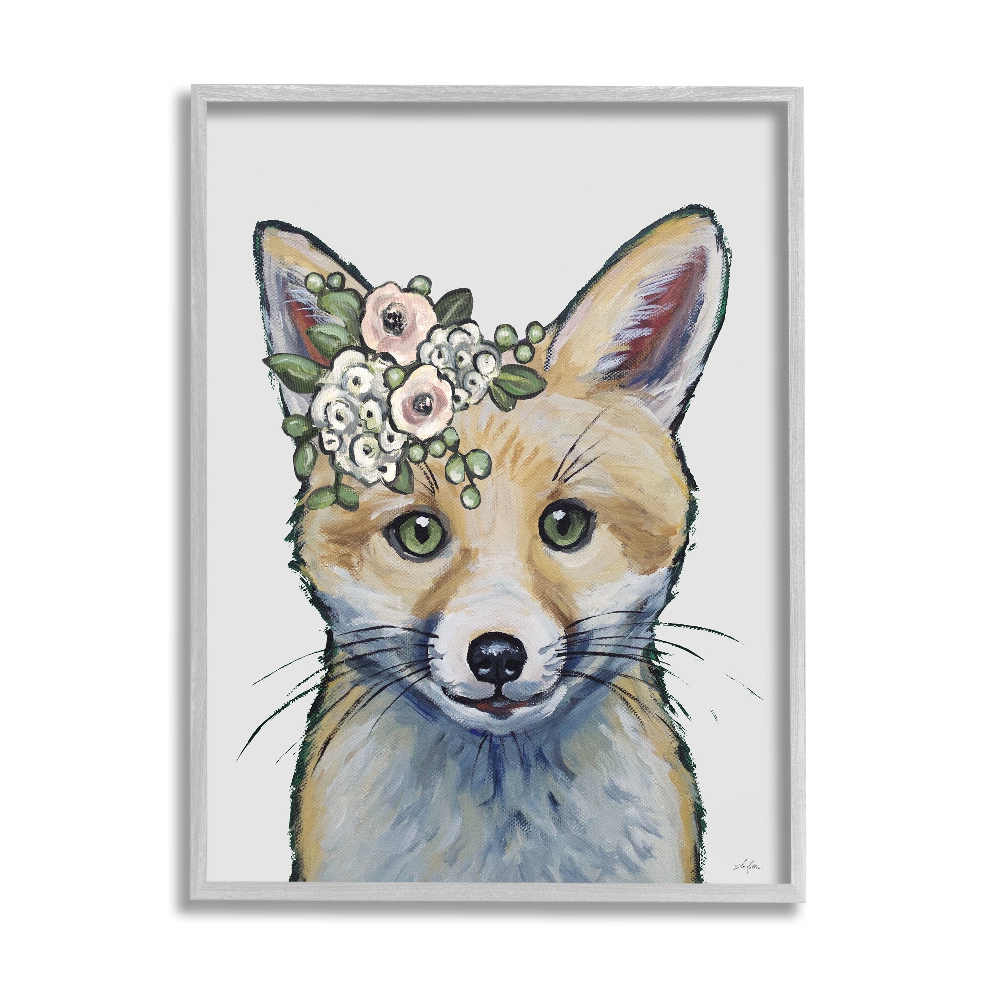 Stupell Industries Smiling Fox Floral Blossom Garland Framed Giclee Art by Lee Keller