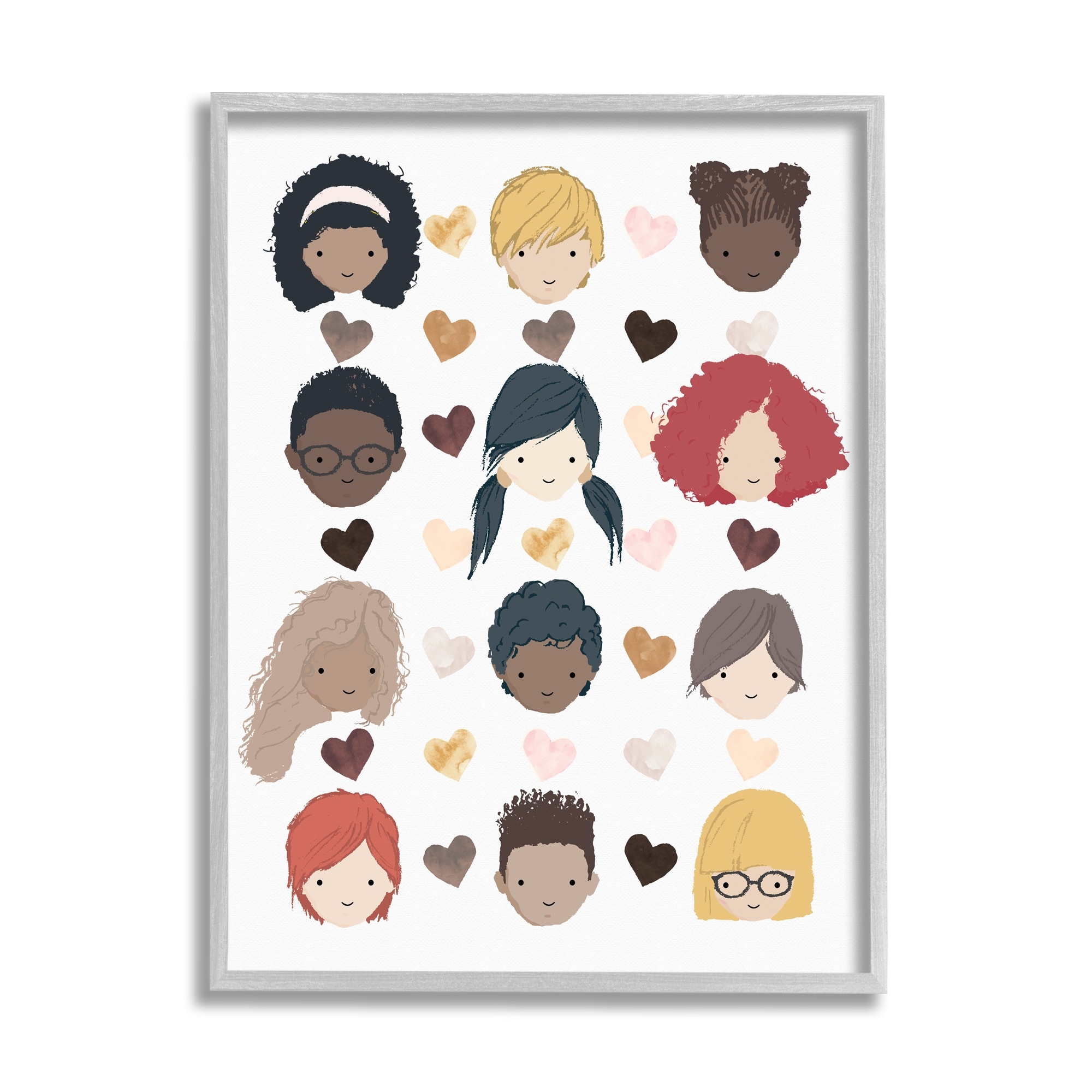 Stupell Smiling Children Diverse Multicultural Pink Brown Hearts Framed Wall Art
