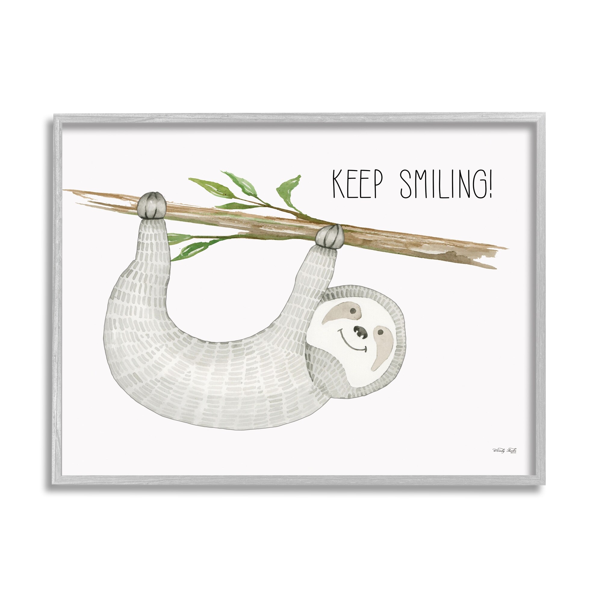 Stupell Keep Smiling Hanging Sloth from Branch Kid's Cartoon Framed Wall Art, Design by Cindy Jacobs - Grey