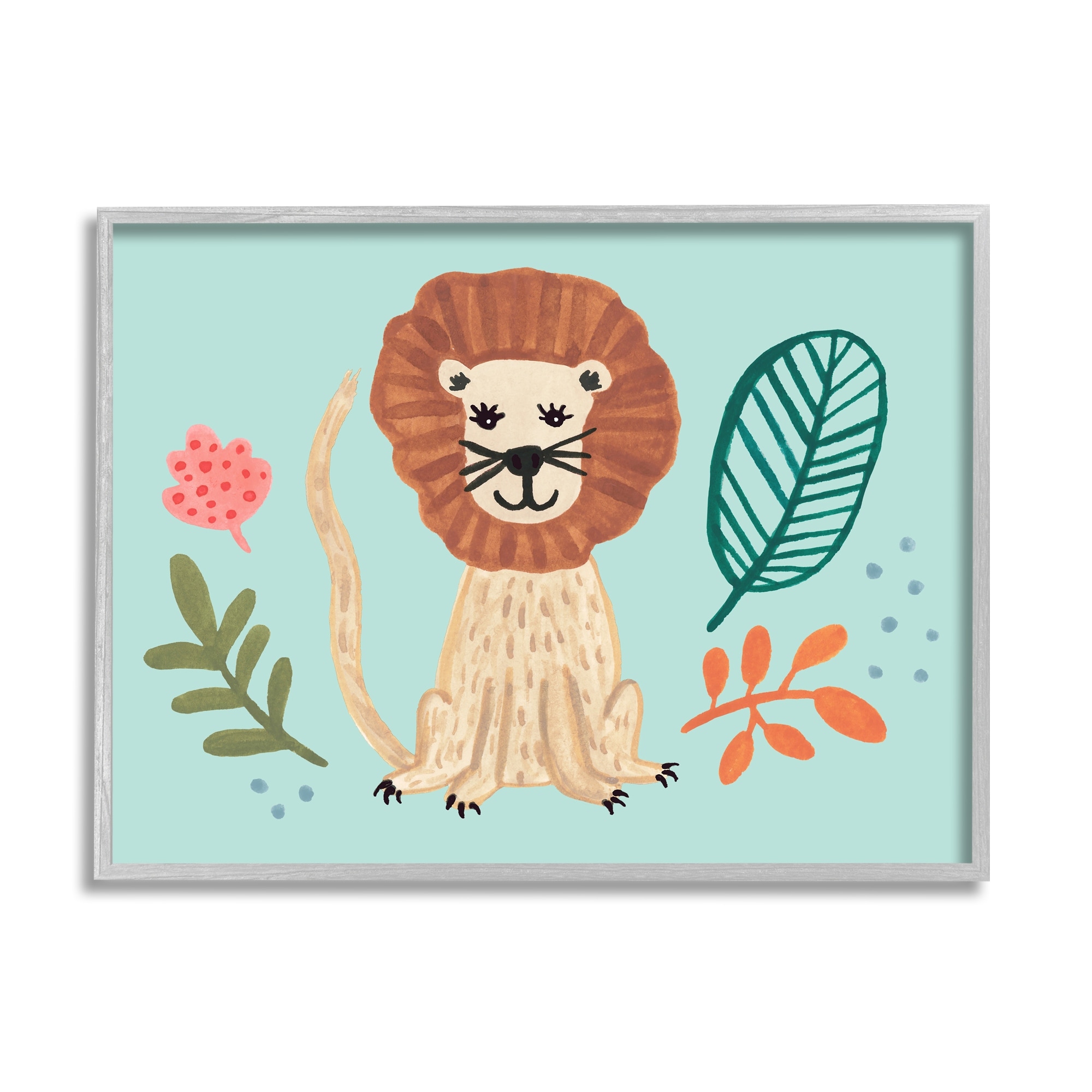 Stupell Lovely Smiling Lion Botanical Plant Frame Illustration Framed Wall Art - Brown