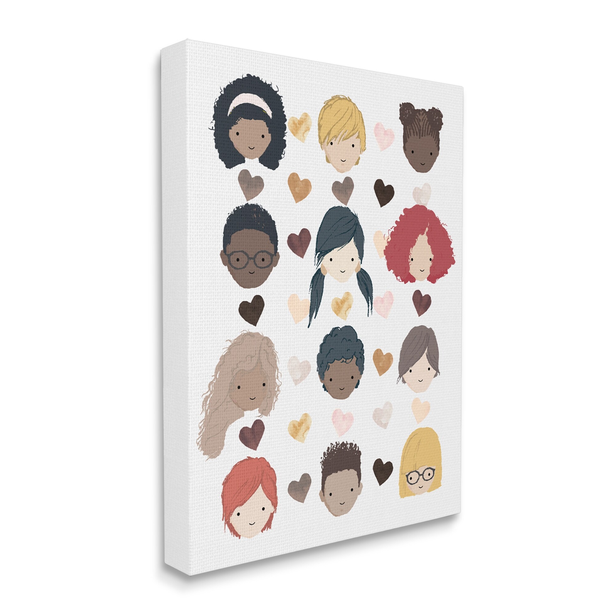 Stupell Industries Smiling Children Diverse Multicultural Pink Brown Hearts Canvas Wall Art