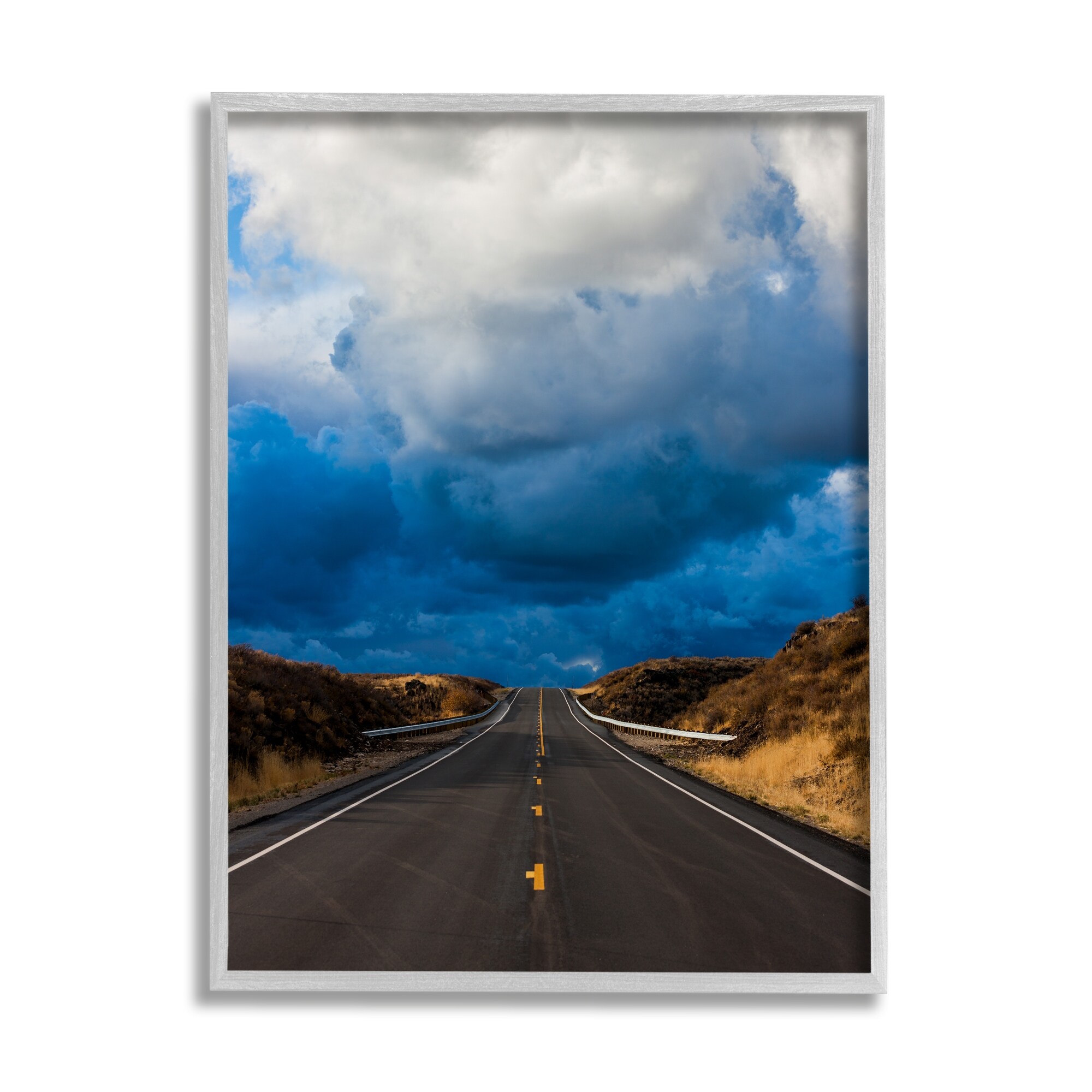 Stupell Industries Highway Road Low Hanging Clouds Rural Countryside Framed Wall Art, Design by Steve Smith - Blue