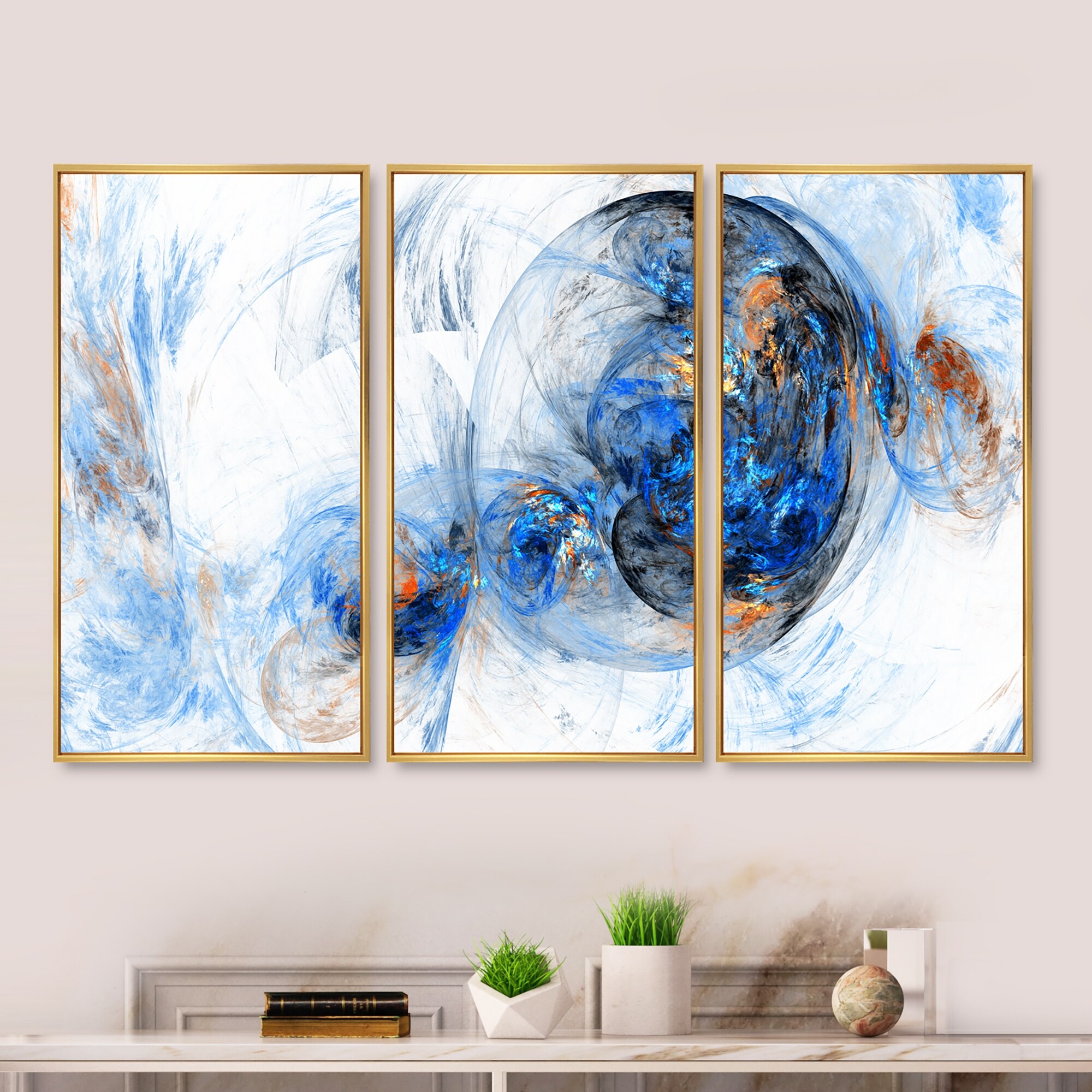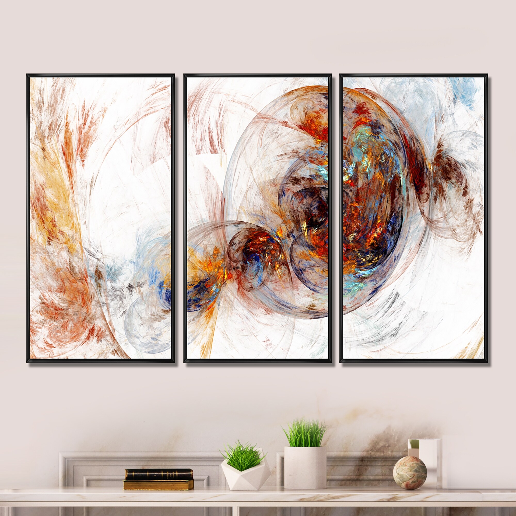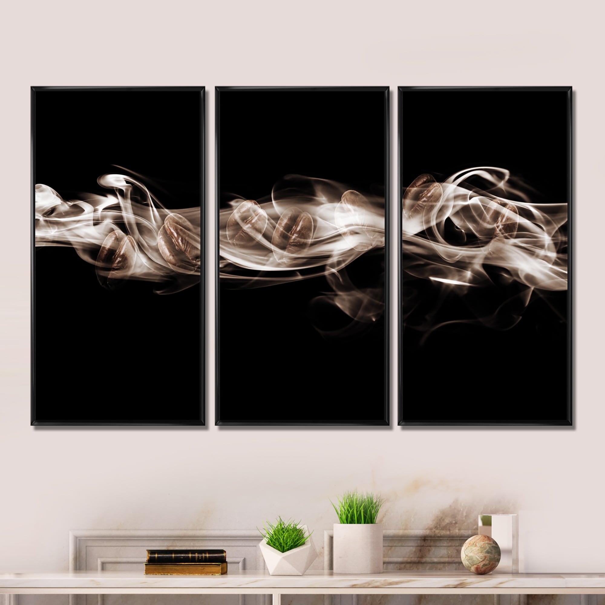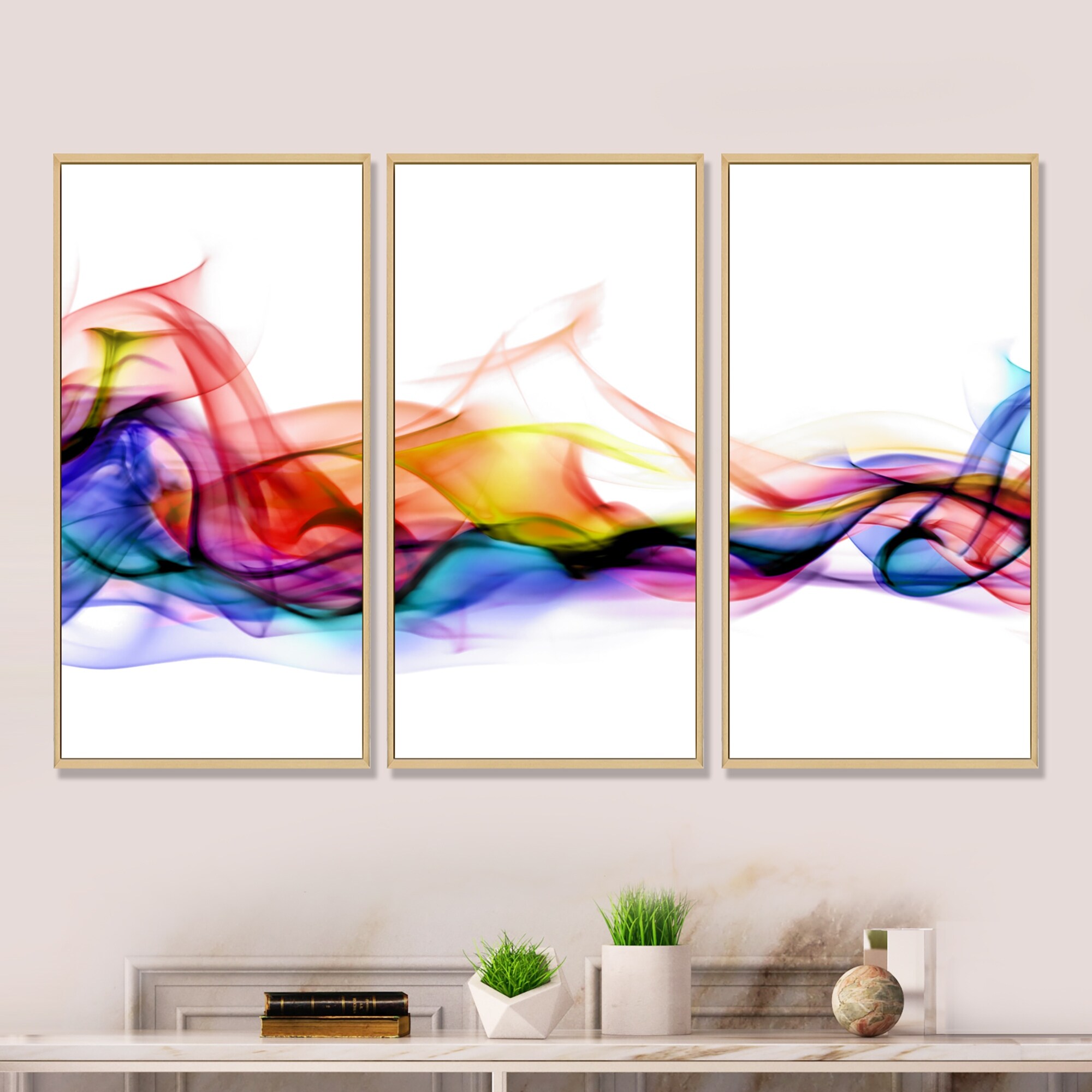 Designart "Abstract Smoke" Abstract Framed Canvas Wall Art Set of 3 - 4 Colors of Frames