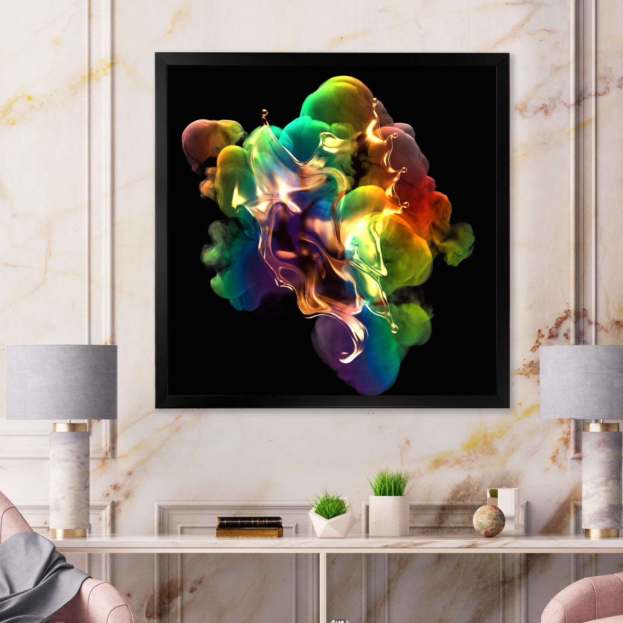 Designart "Splash Of Gold And Smoke Rainbow Color on A Black" Modern Framed Art Print