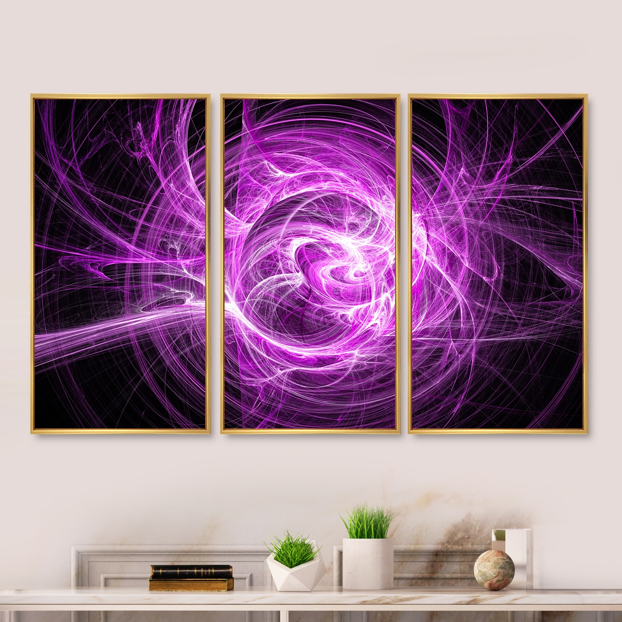 Designart "Wisps of Smoke Purple in Black" Abstract Framed Wall Decor Set of 3 - 4 Colors of Frames