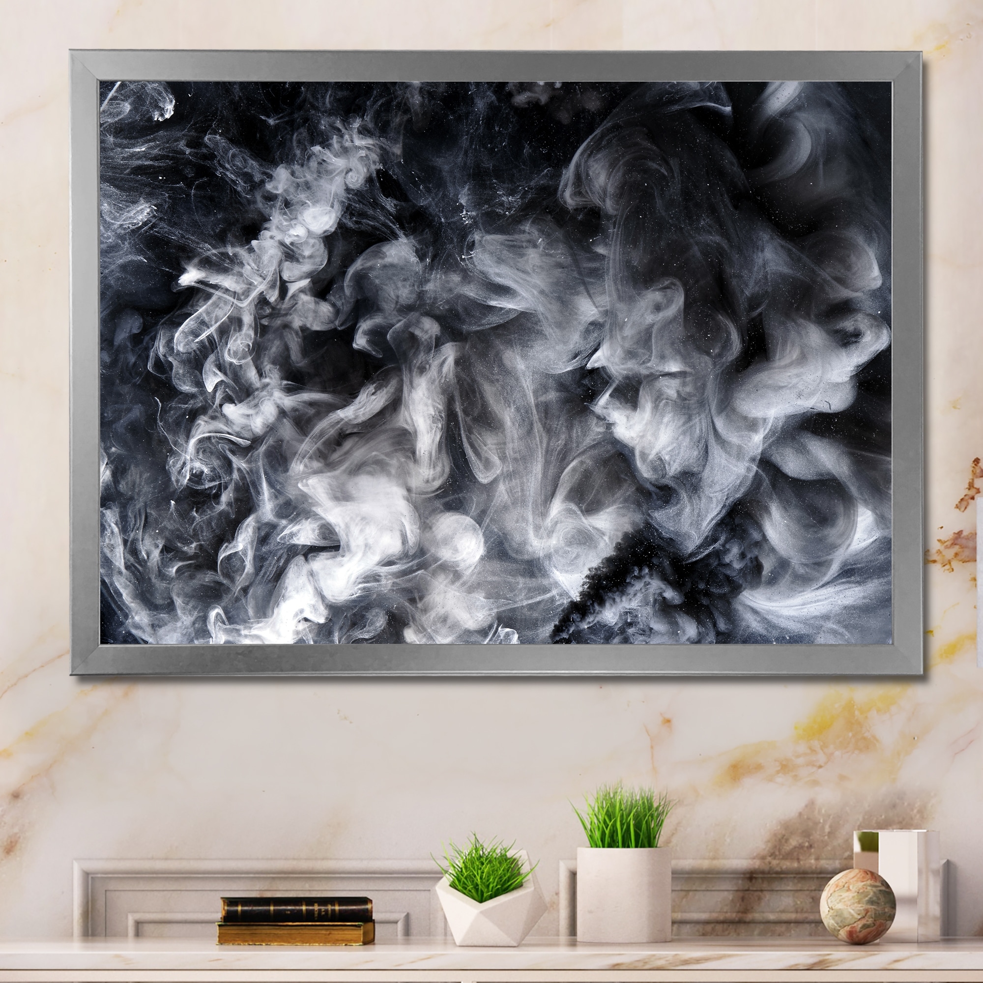 Designart "Abstract Black White Swirling Smoke" Modern Framed Wall Art
