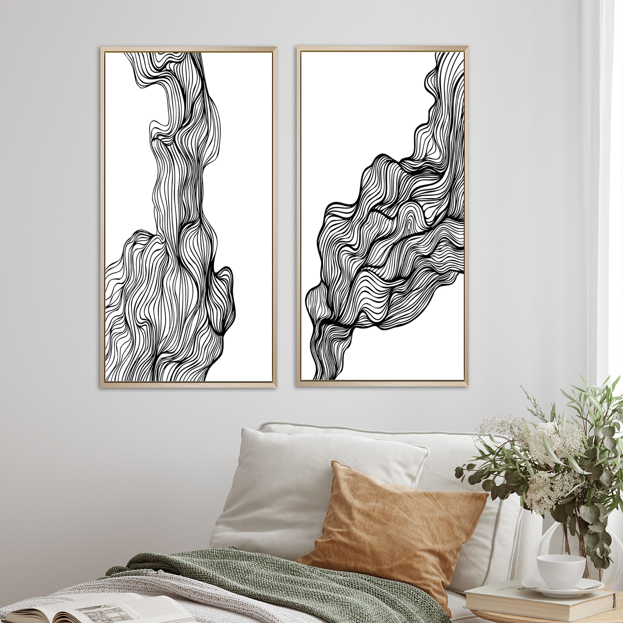 Designart "Abstract Minimalistic Volumetric Smoke I" Abstract Framed Art Set of 2 Pieces