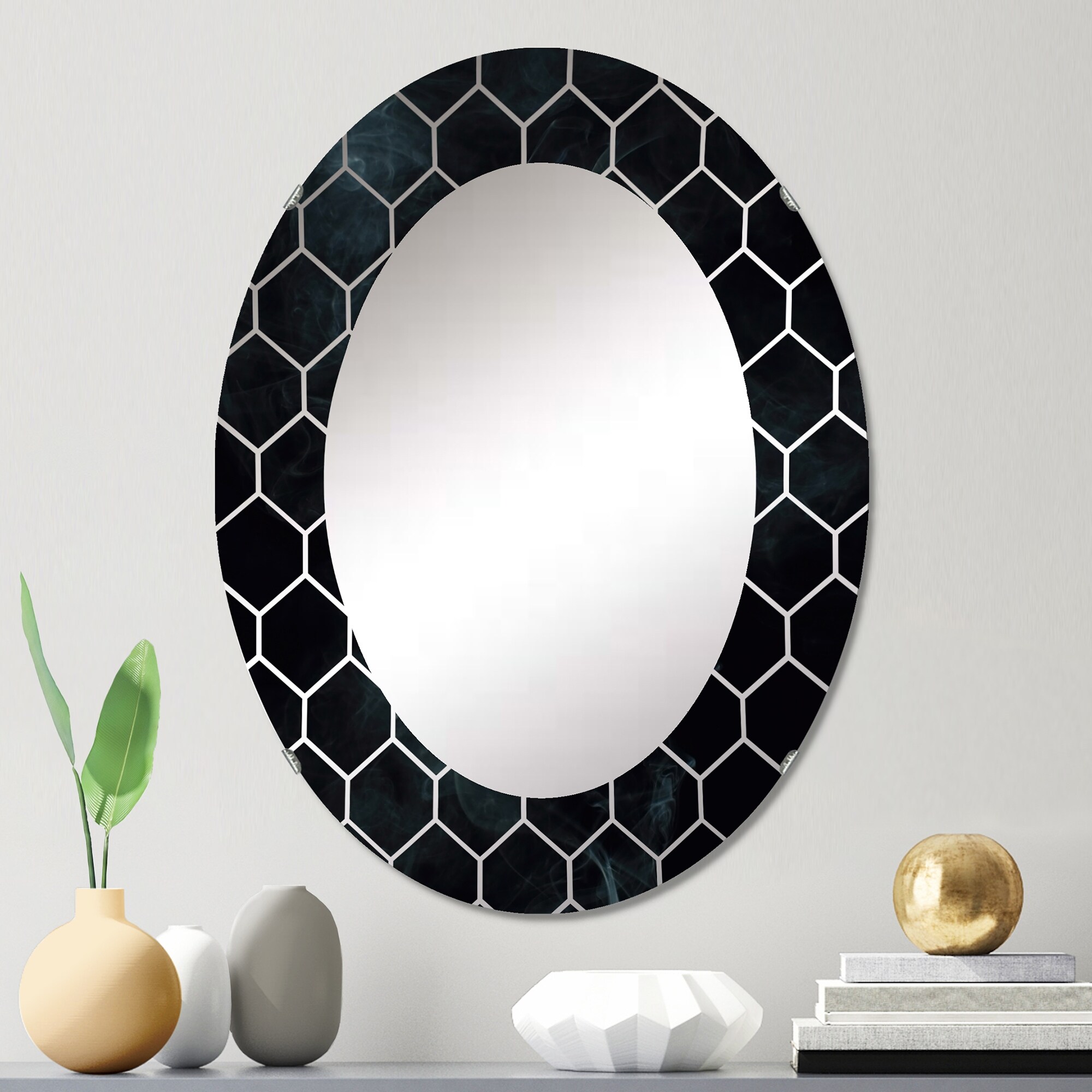 Designart 'White Smoke on Black' Printed Modern Wall Mirror