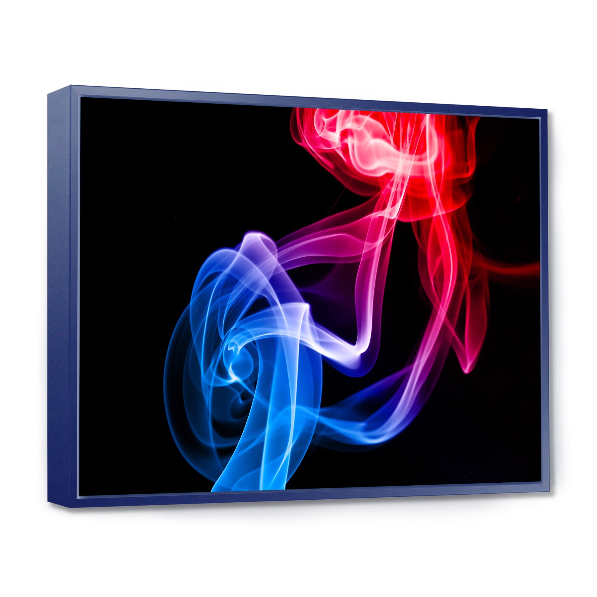 Designart "Blue Red Floating Smoke on Black" Large Abstract Framed Canvas Wall Art