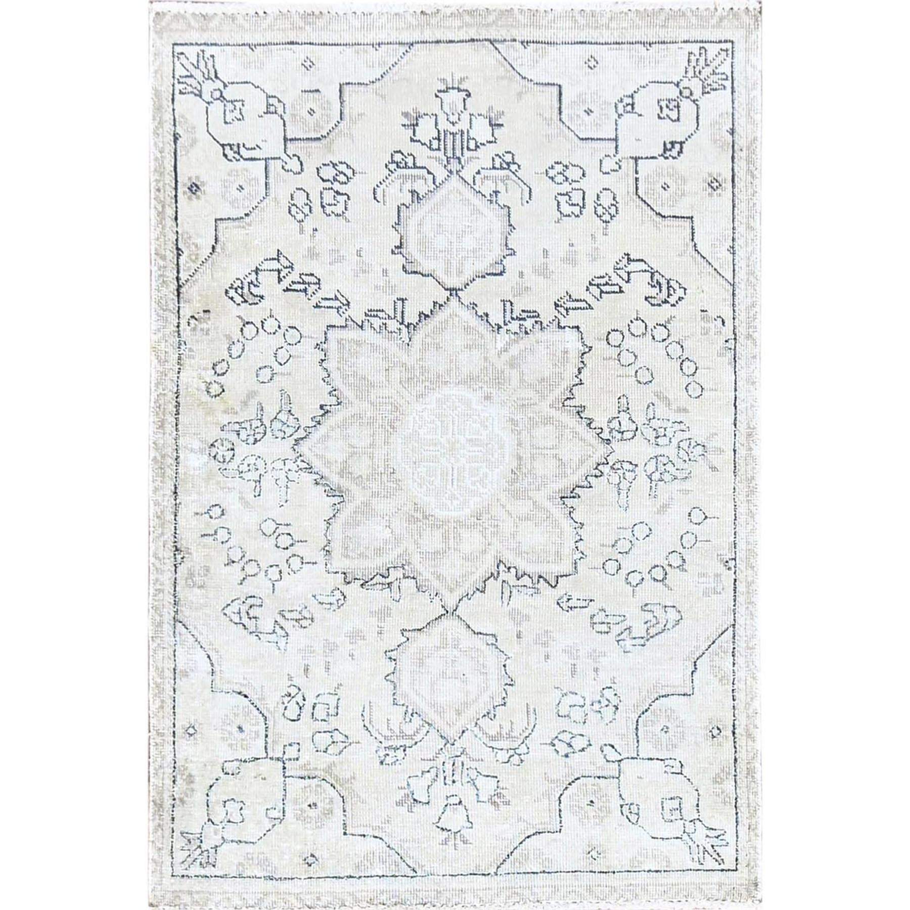 Shahbanu Rugs Smoke White Wool Hand Knotted Vintage Persian Tabriz Large Floral Design Worn Down Rustic Feel Rug (3'0" x 4'4")