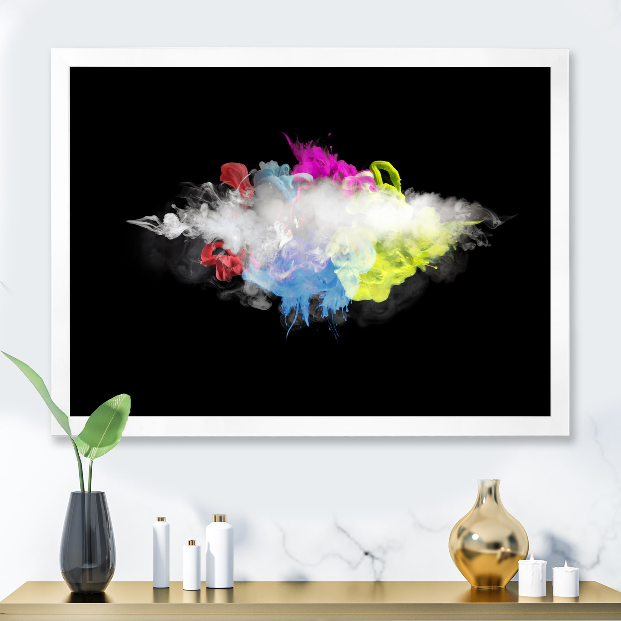 Designart "White Smoke With Vibrant Colours I" Modern Framed Art Print