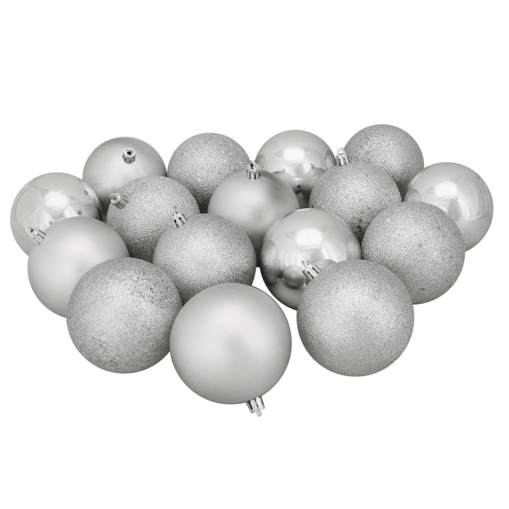 16ct Silver Splendor Shatterproof 4-Finish Christmas Ball Ornaments 3"