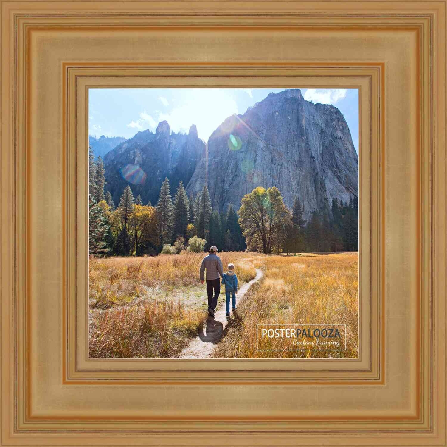 17x17 Traditional Gold Complete Wood Square Picture Frame with UV Acrylic, Foam Board Backing, & Hardware