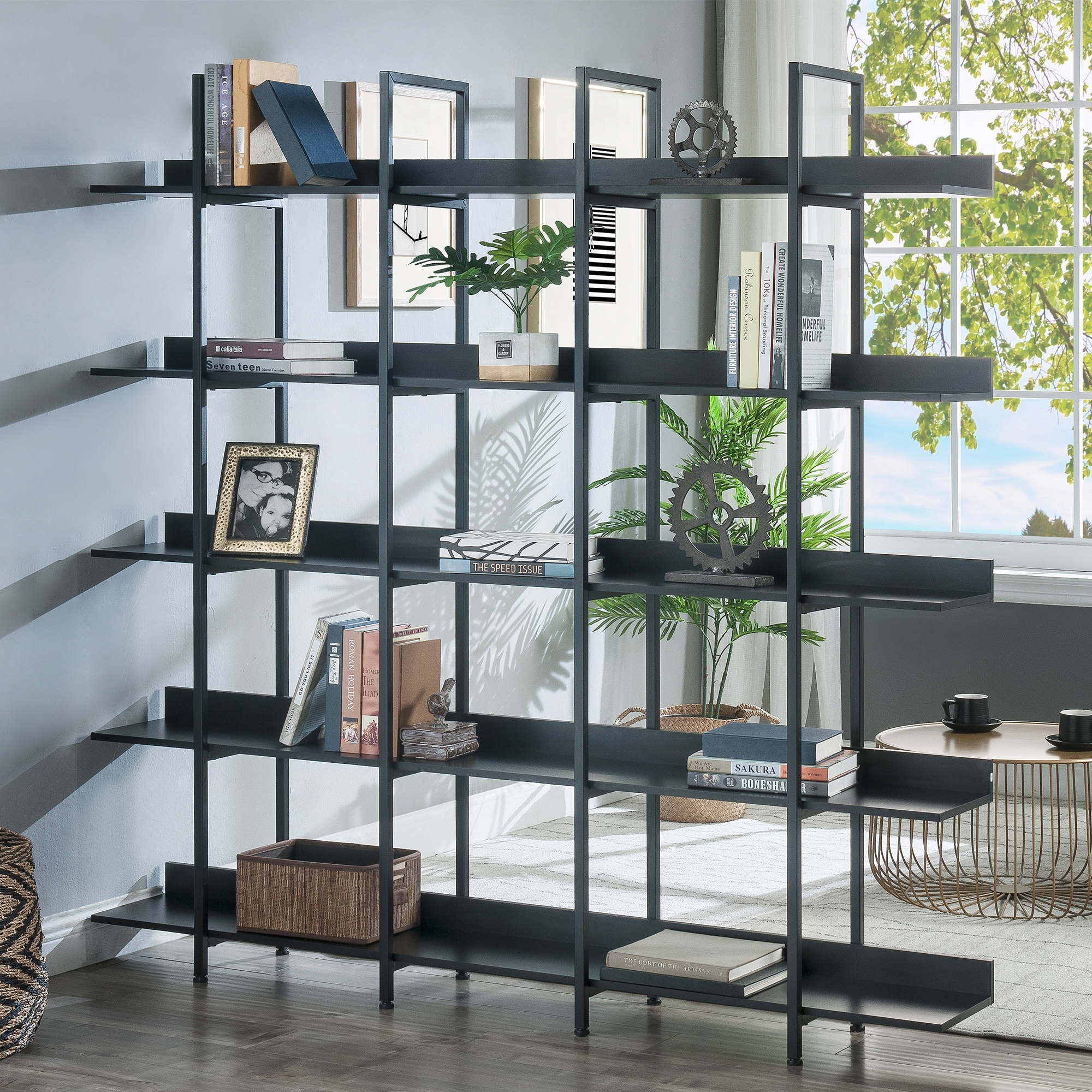 5Tier Industrial Bookshelf Freestanding Bookcases Open Display Storage - 70.9"H