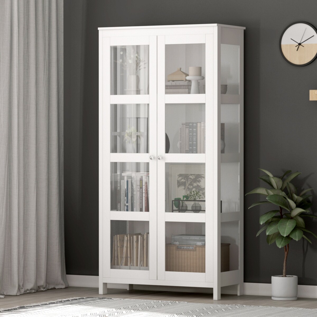 FAMAPY 70-in Tall Acrylic Glass Door Display Bookcase Floor Storage - 70.9"H
