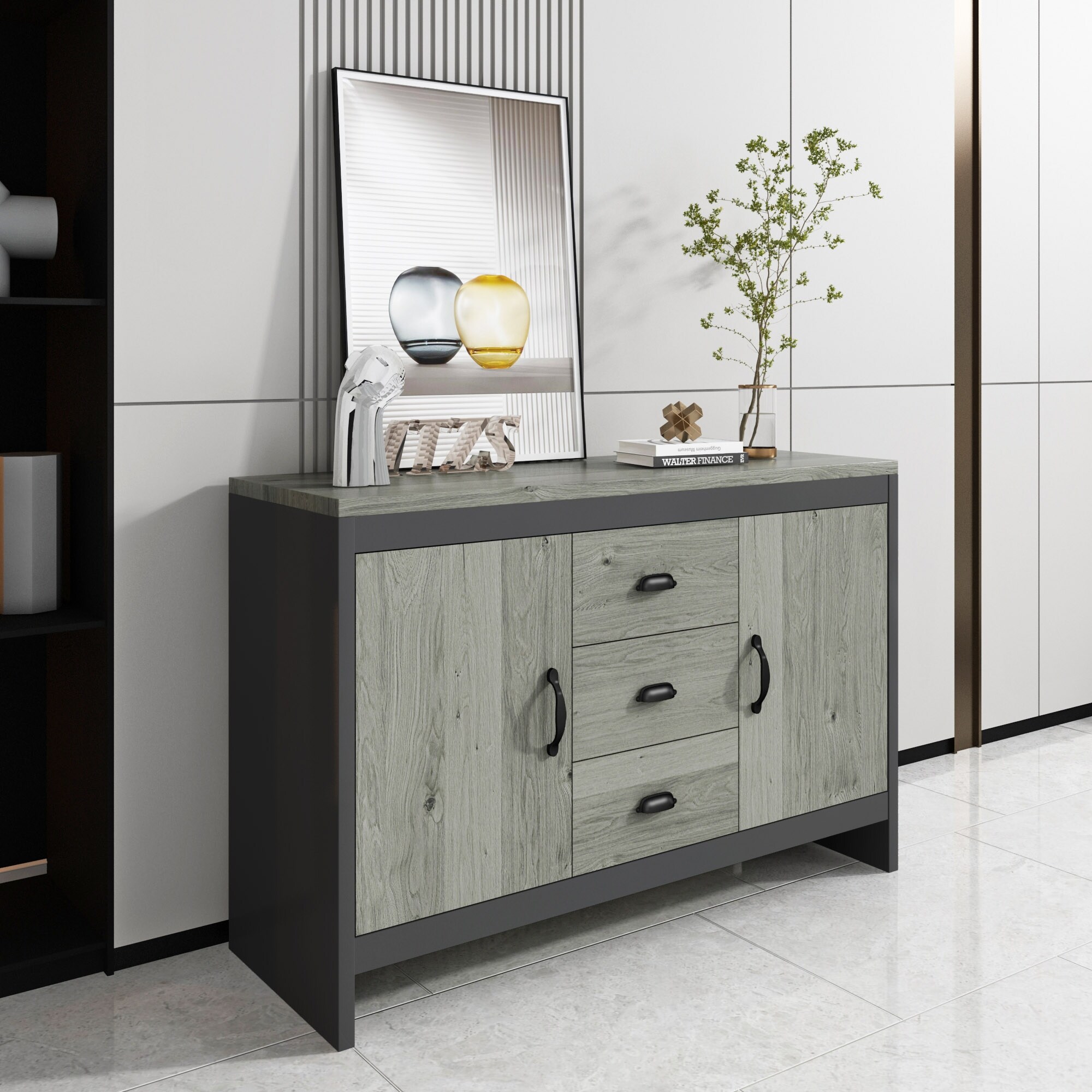 Sideboard with 3 Drawer Storage Cabinet Entryway Floor Cabinet Dresser