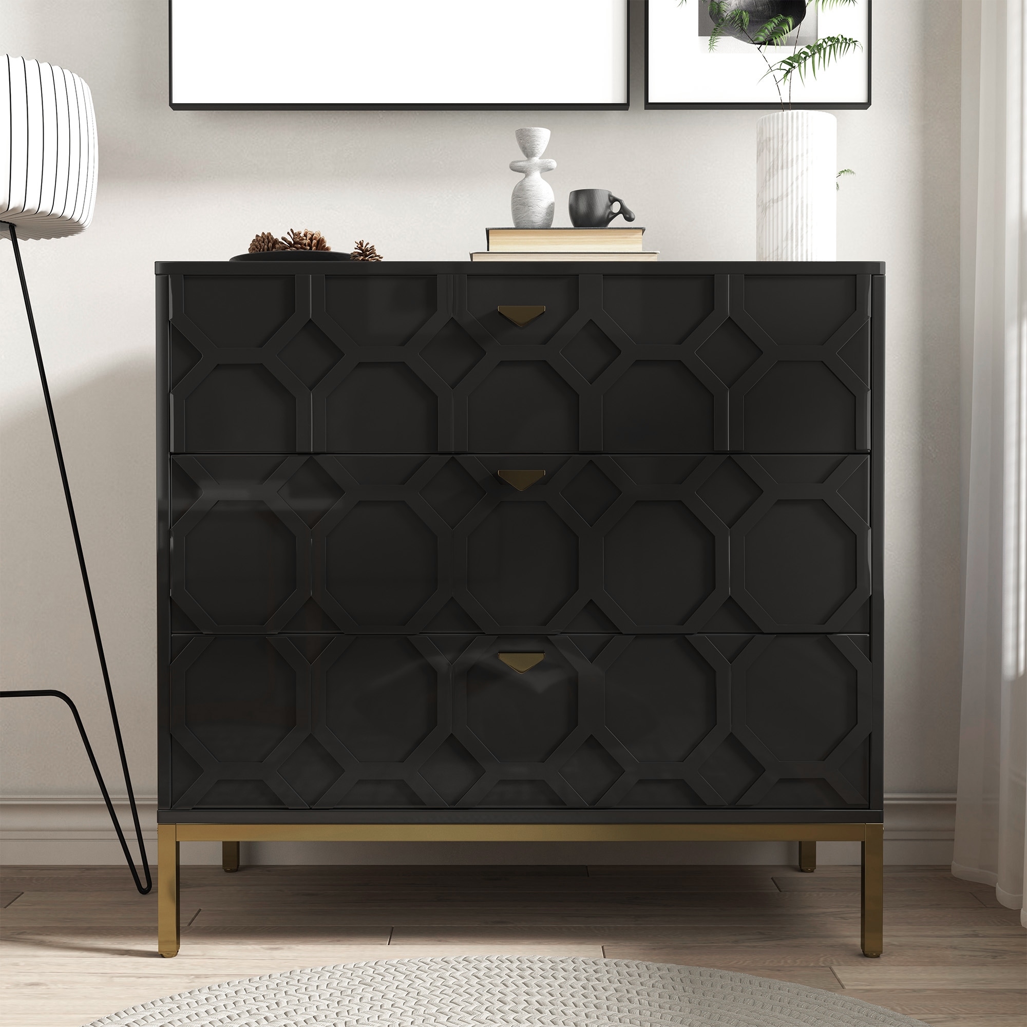 Clihome Modern Wooden Glossy 3-Drawer Storage Chest