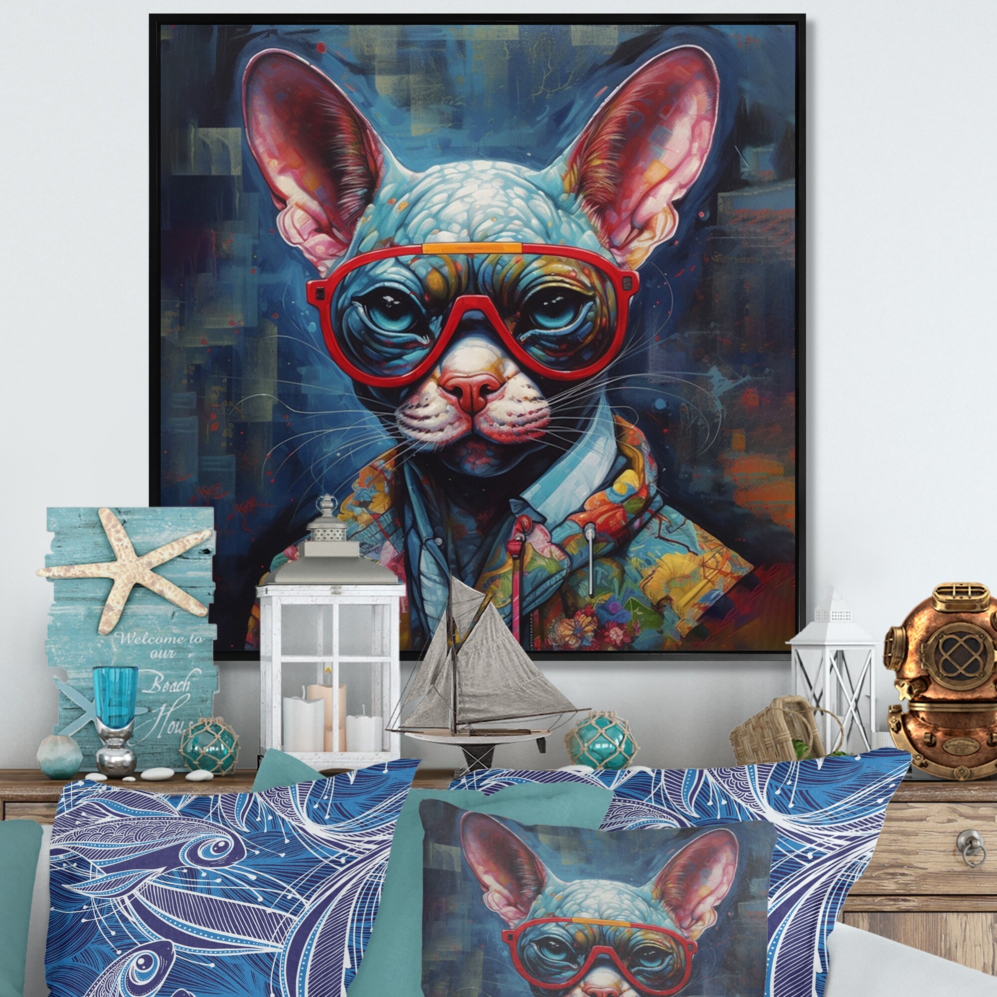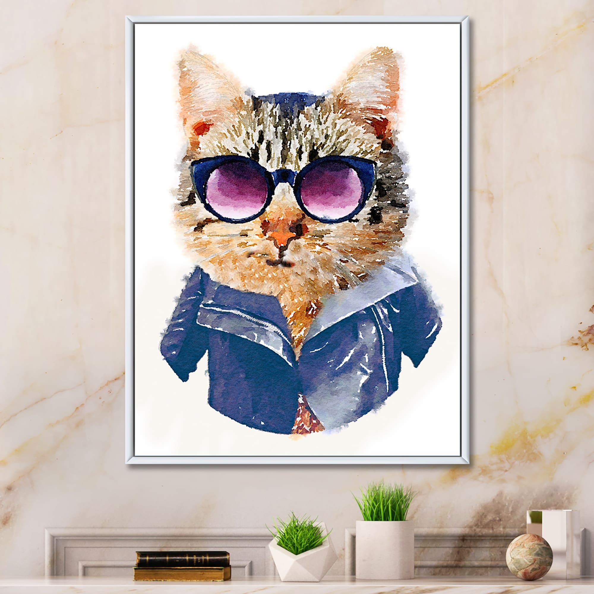 Designart "Cool Cat With Sunglasses I" Animals Cat Kittens Framed Canvas Wall Art