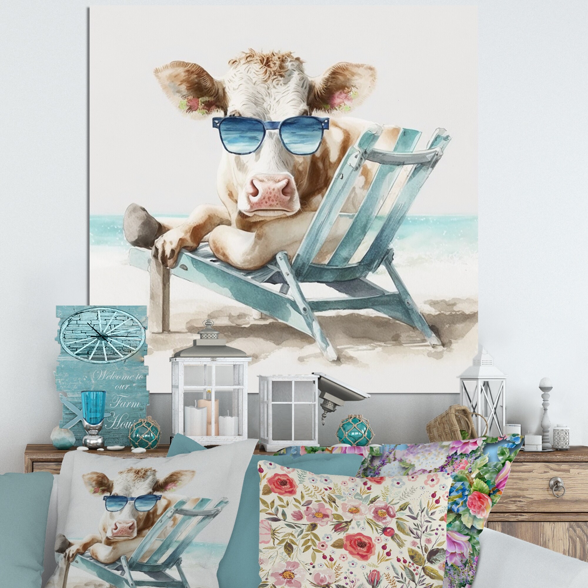 Designart 'Cow Lounging With Sunglasses II' Farmhouse Canvas Wall Art