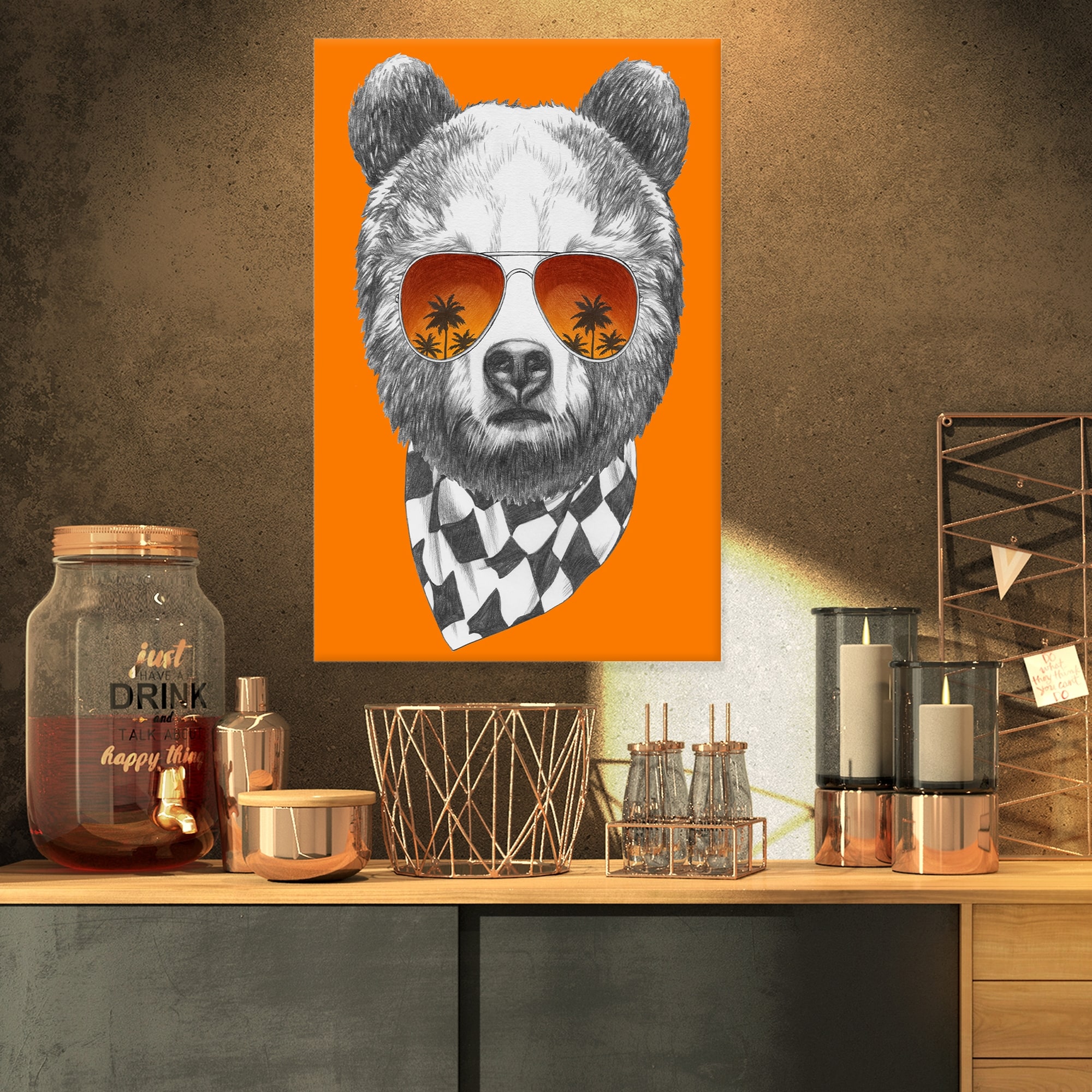 Designart "Funny Bear with Sunglasses" Animal Canvas Art Print