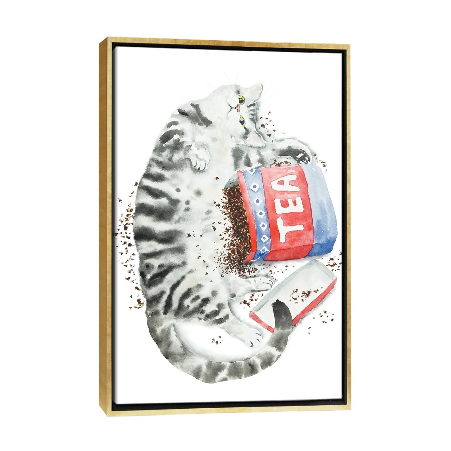 iCanvas "Gray Tabby Cat And Tea" by Alexey Dmitrievich Shmyrov Framed