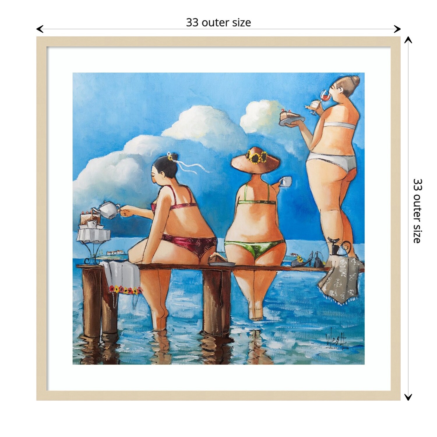 Tea Break on the Jetty by Ronald West Wood Framed Wall Art Print