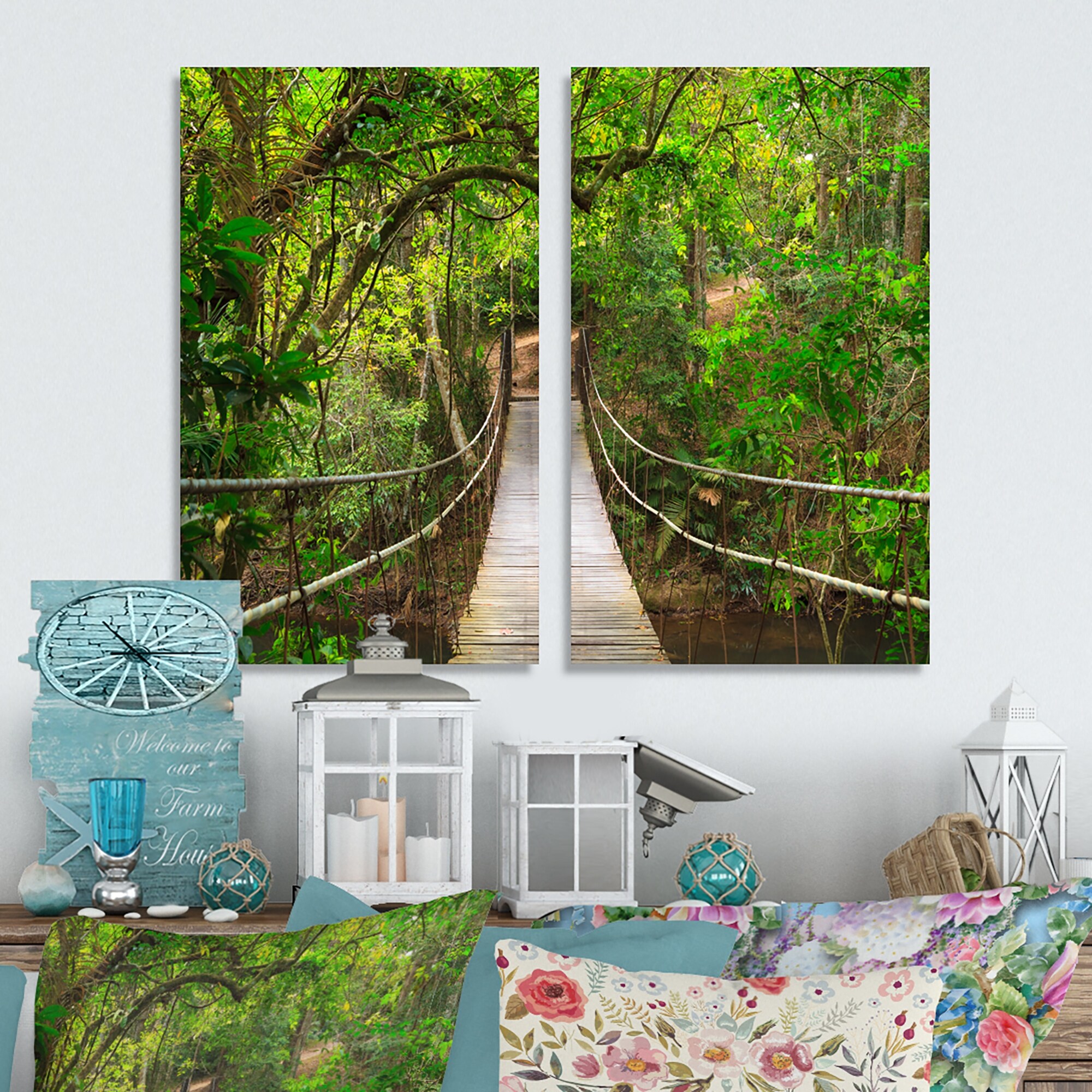 Designart "Bridge to Jungle Thailand" Landscape Canvas Wall Art Print 2 Piece Set
