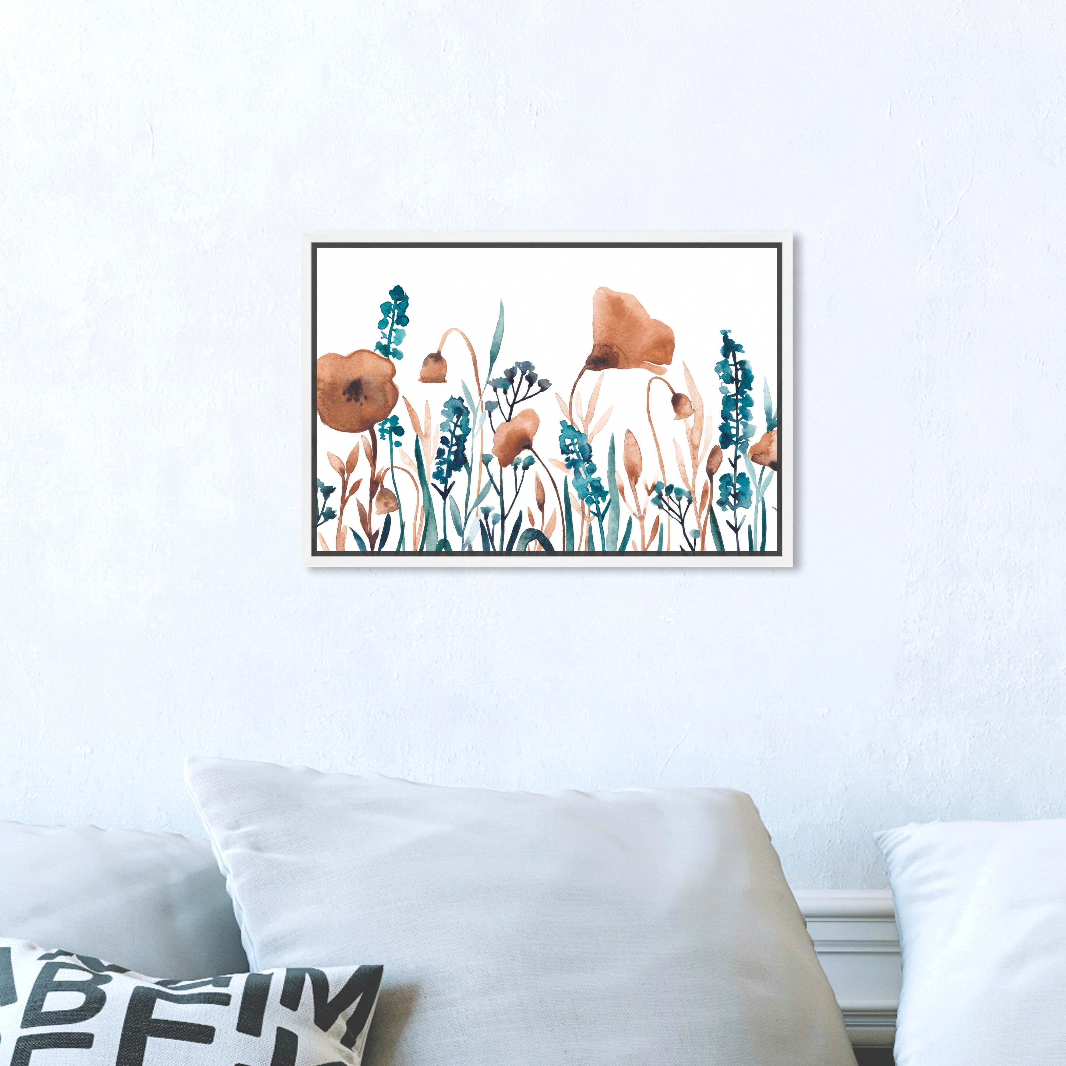 Oliver Gal 'Topaz Field' Floral and Botanical Wall Art Framed Canvas Print Gardens - Blue, Brown