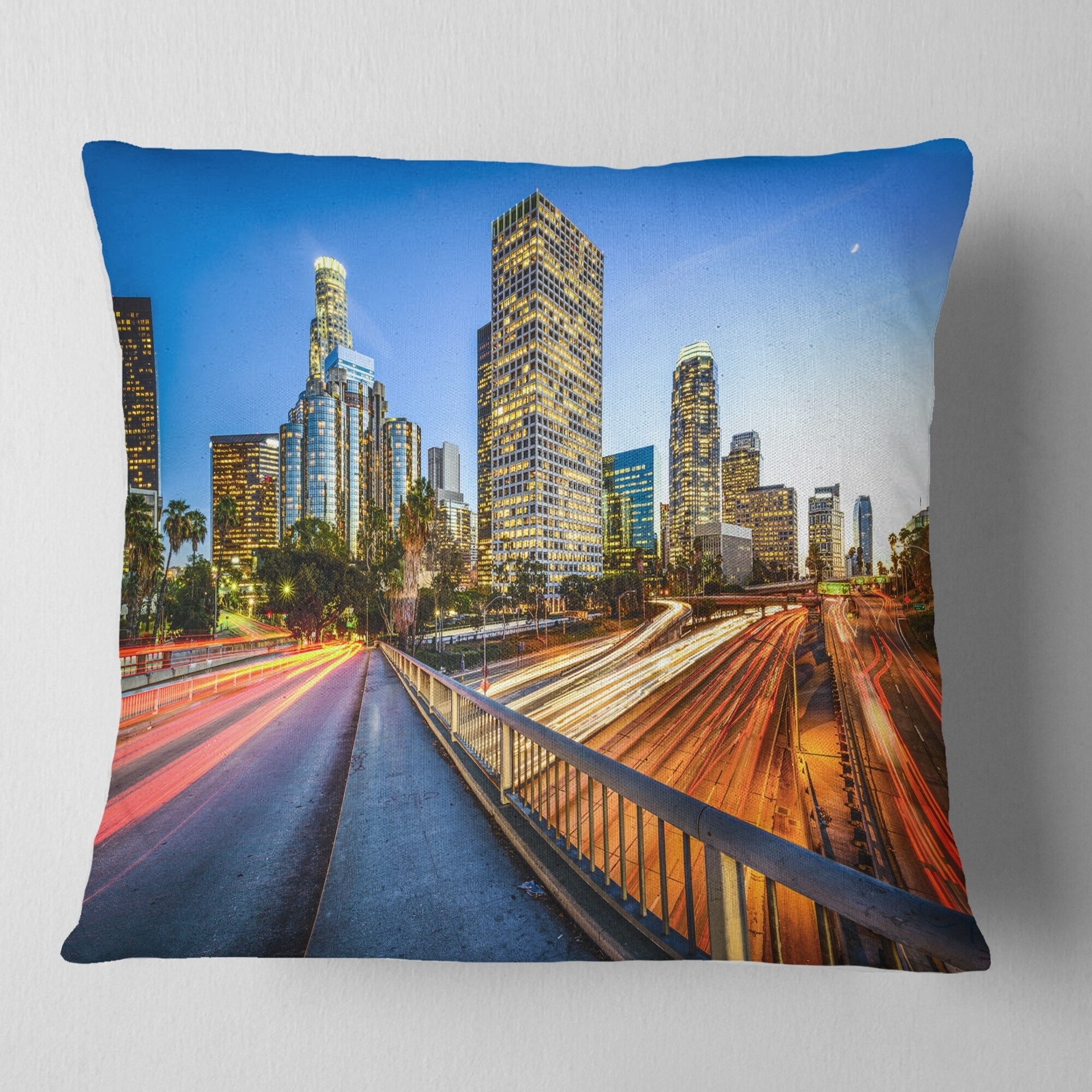 Designart 'Downtown LA with Traffic Trail' Cityscape Throw Pillow