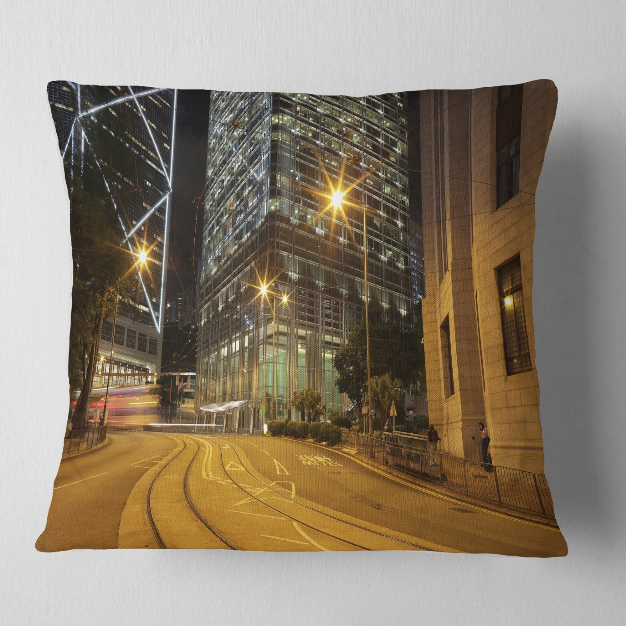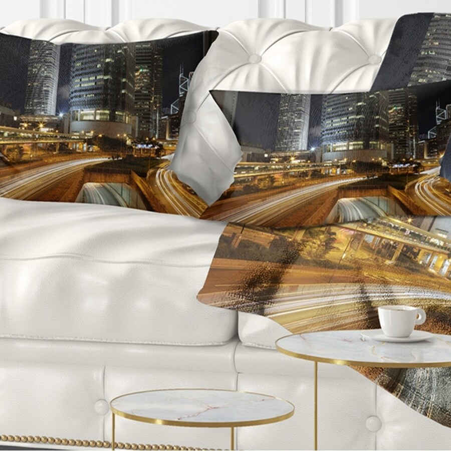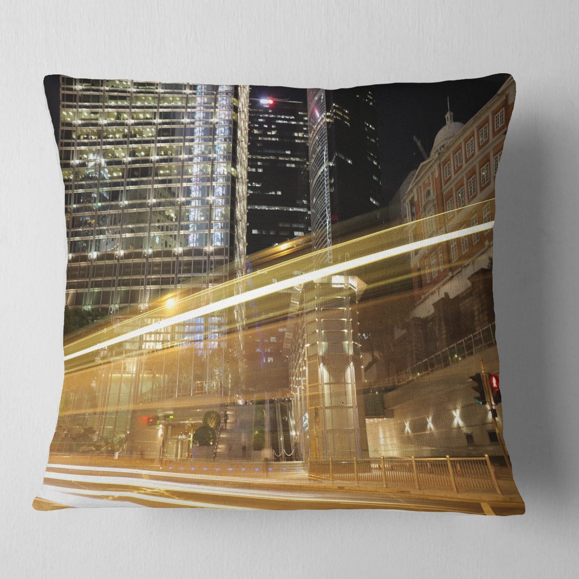 Designart 'Traffic In Hong Kong at Night' Cityscape Throw Pillow