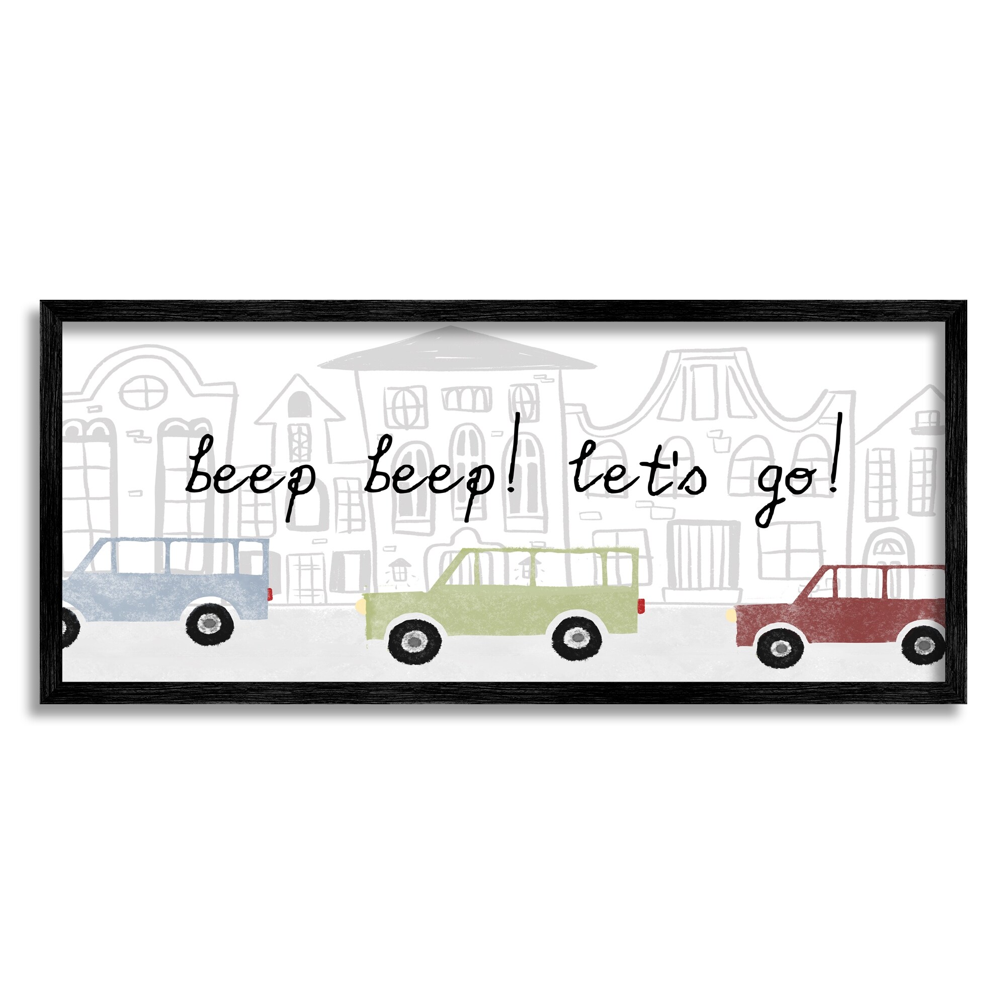 Stupell Beep Let's Go Traffic Town Cityscape Cartoon Cars Framed Wall Art, Design by Daphne Polselli - Multi