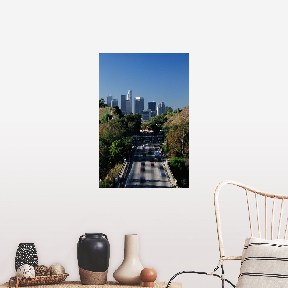 "California, Los Angeles, Freeway traffic in Los Angeles city" Poster Print - Multi