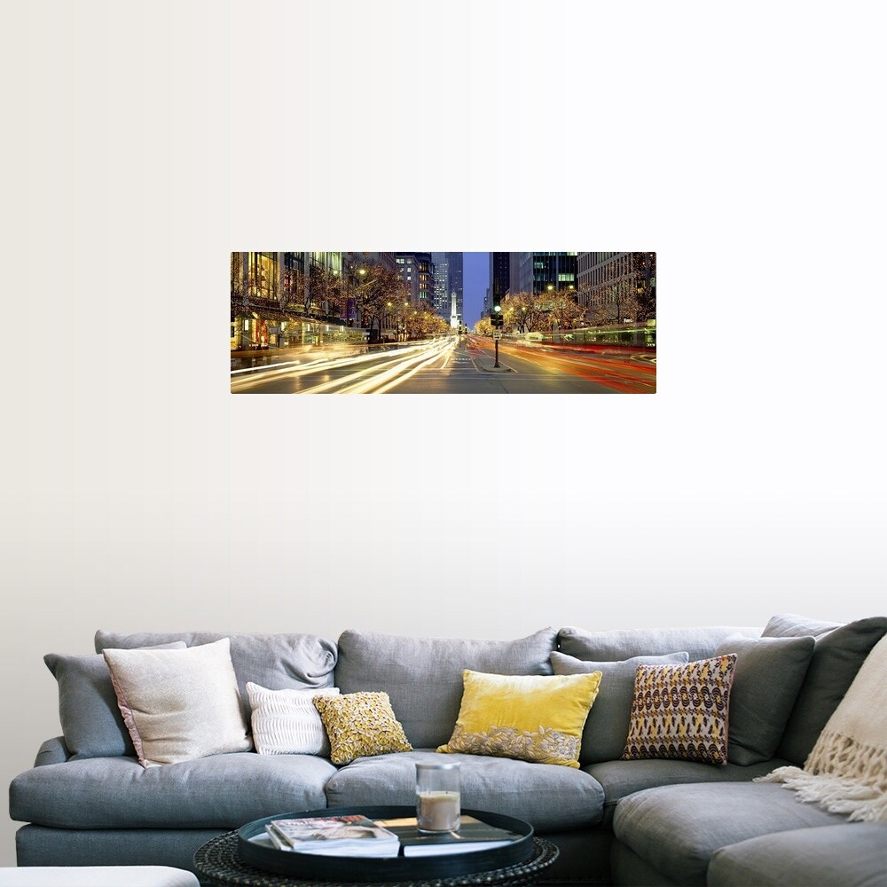 Easy Art Prints Panoramic Image 'Traffic on road at dusk, Michigan Avenue, Chicago, Cook County, Illinois' Canvas Art
