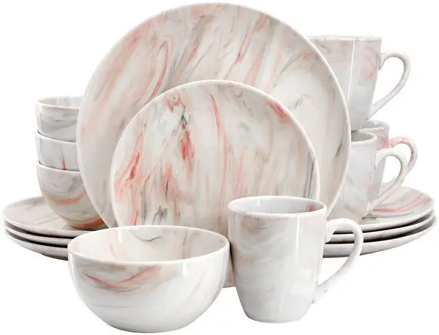 Elama Fine Marble 16 Piece Porcelain Dinnerware Set in Red and Gray