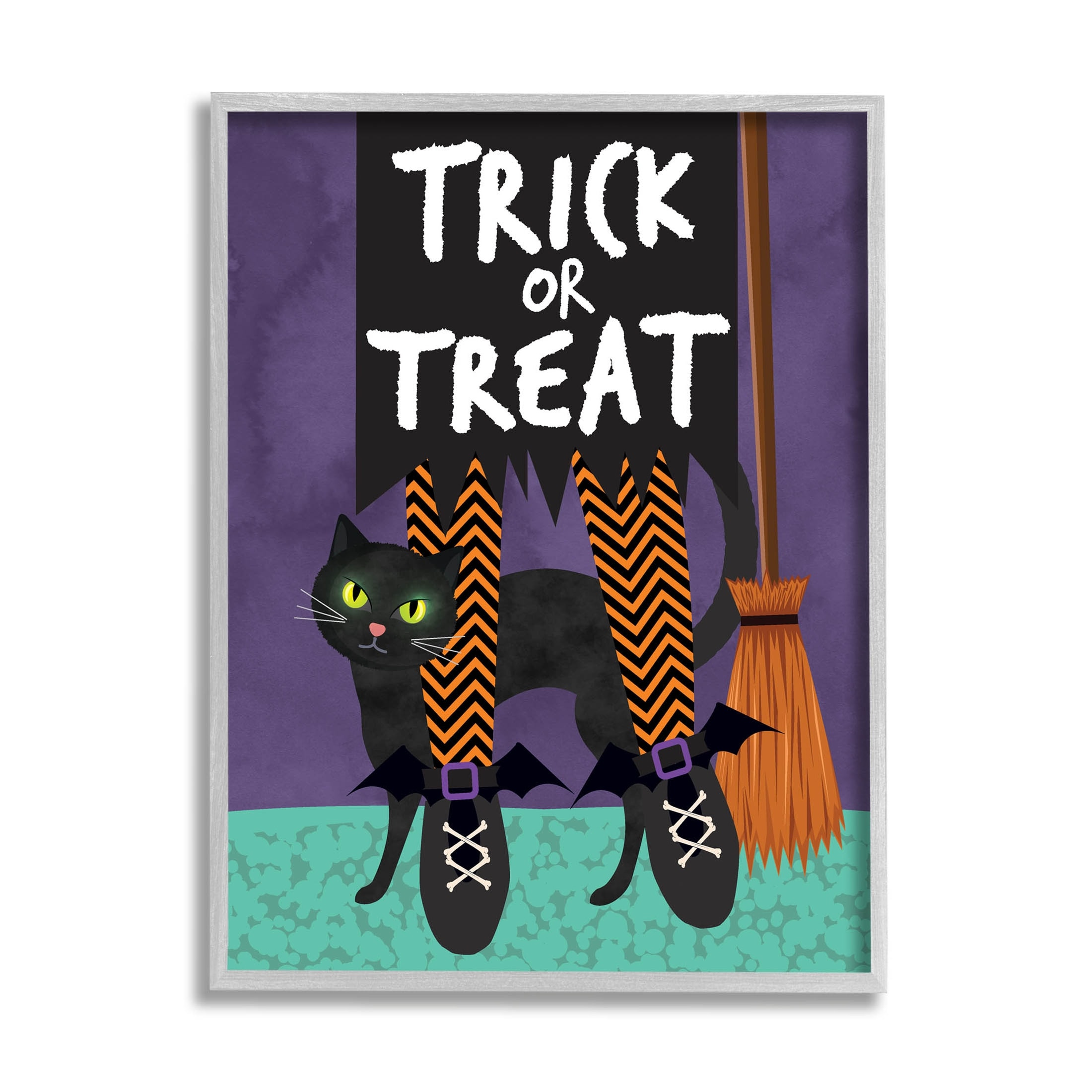 Stupell Industries Trick Or Treat Phrase Whimsical Striped Witch Socks Framed Wall Art