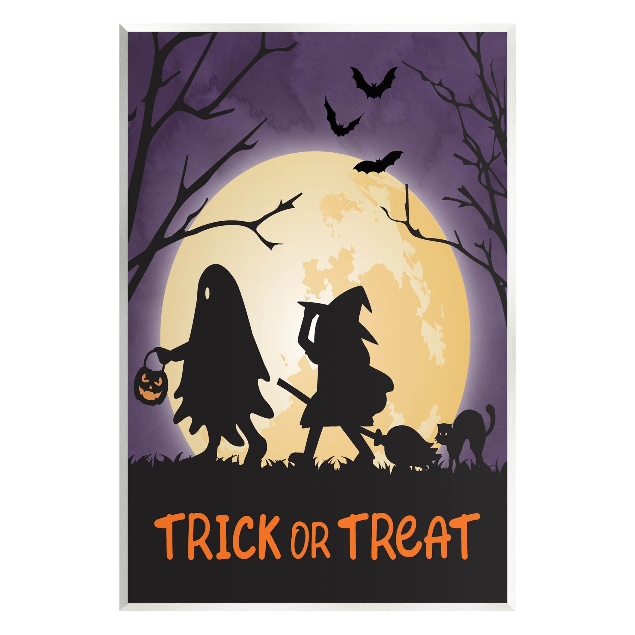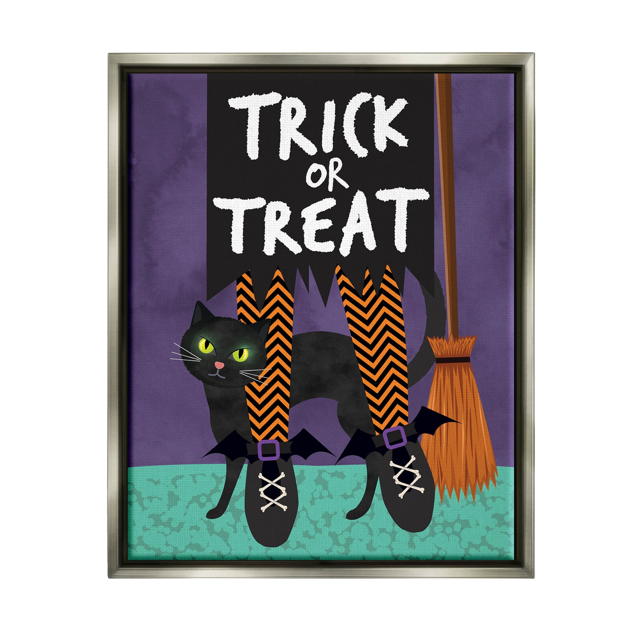 Stupell Industries Trick or Treat Purple Halloween Framed Floater Canvas Wall Art by ND Art