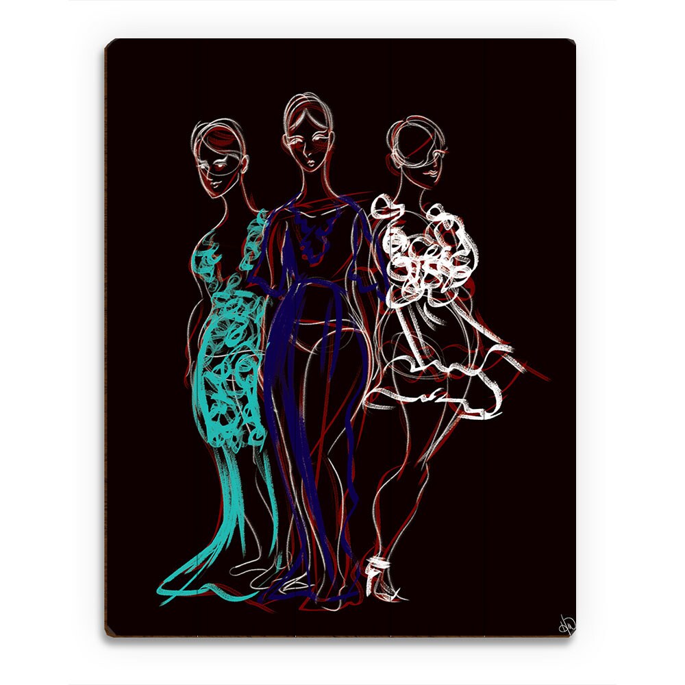 Fashionista Trio Red Sketch Wall Art Print on Wood