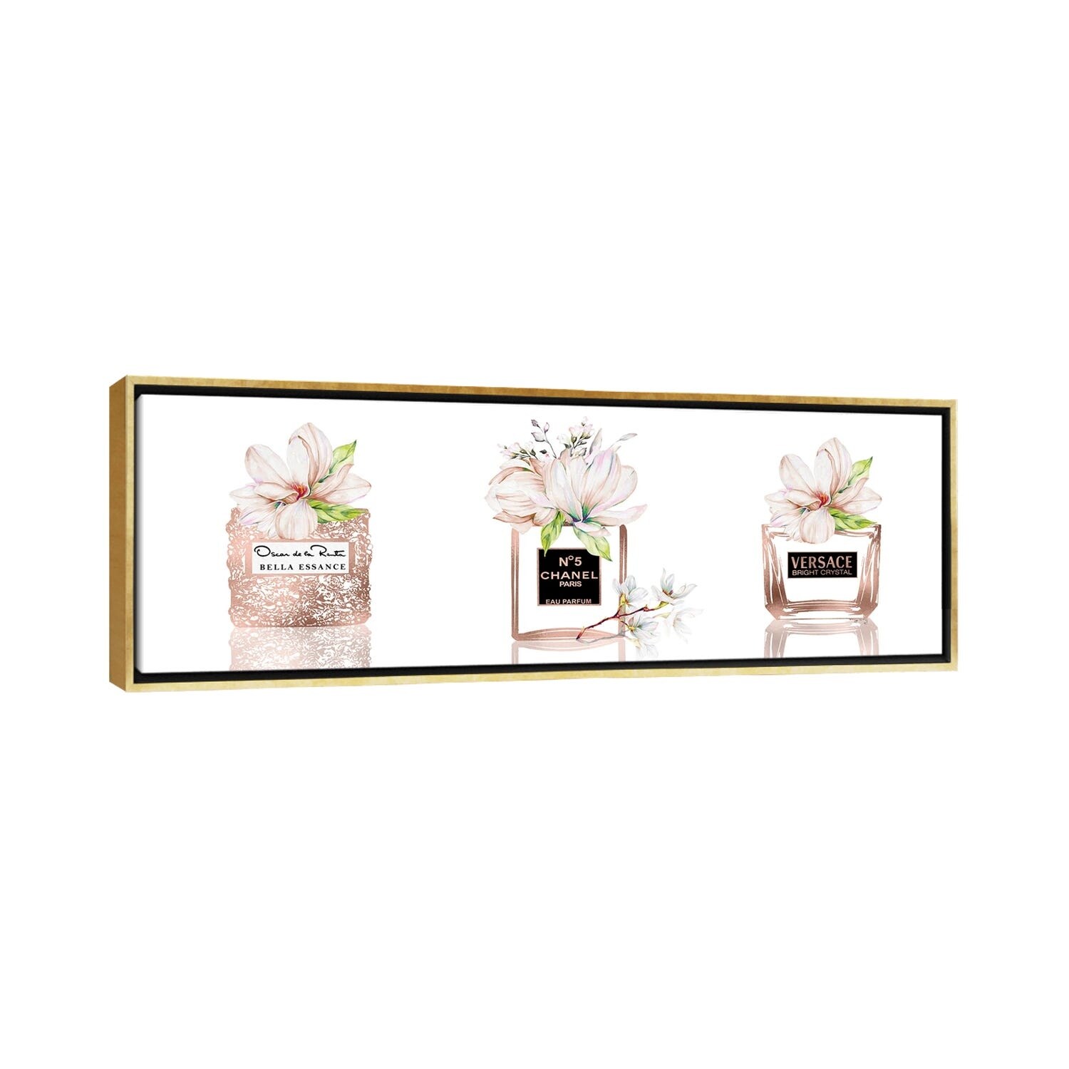 iCanvas "Ravishing Rose Gold Perfume Bottle Trio With Magnolias" by Pomaikai Barron Framed