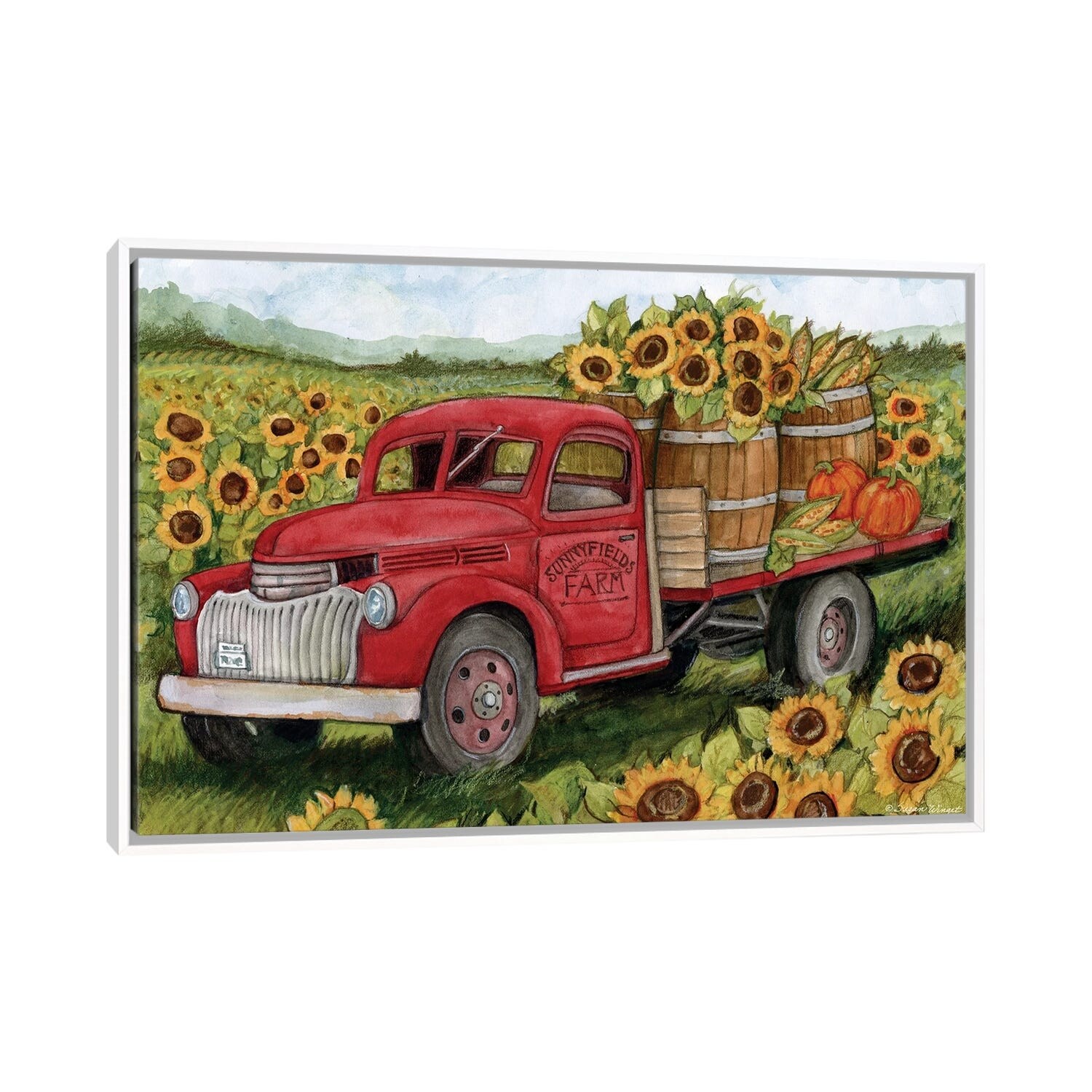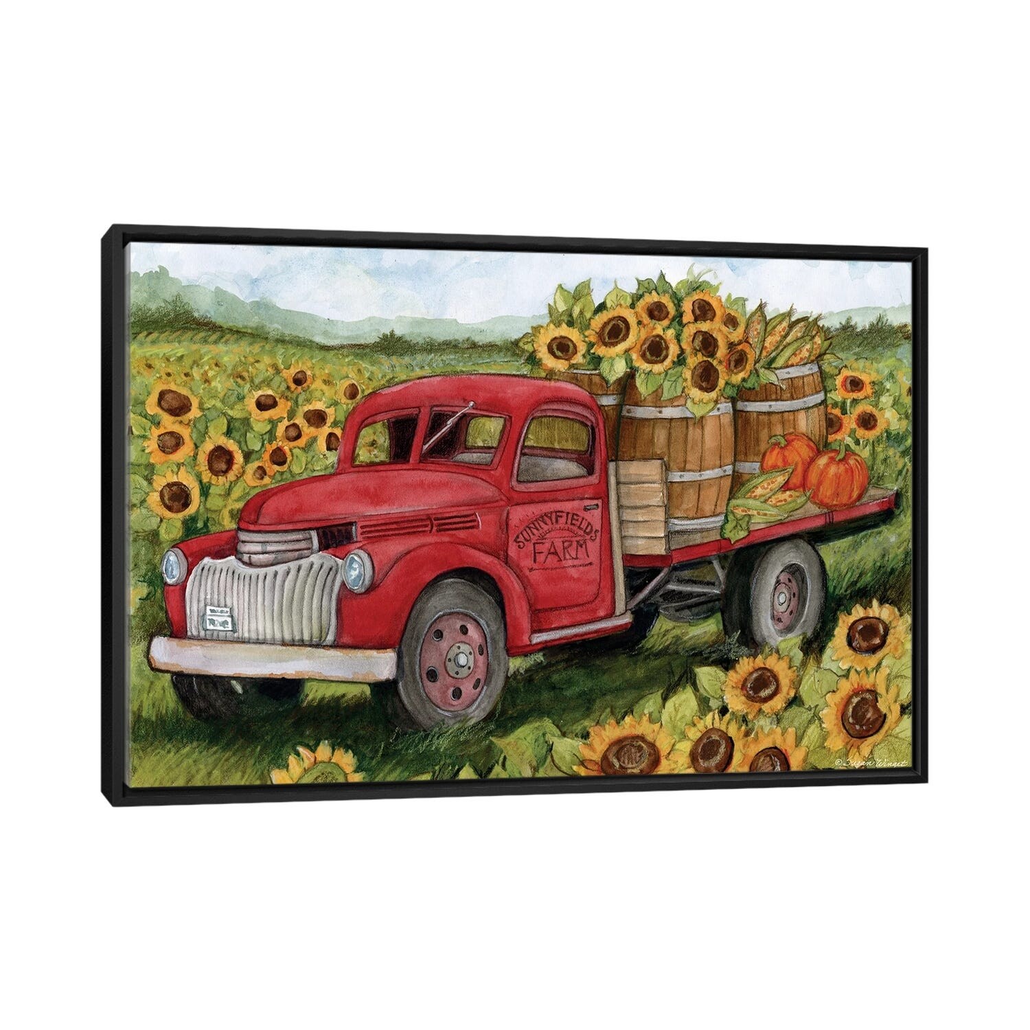 iCanvas "Sunflower Fields Red Truck" by Susan Winget Framed Canvas Print