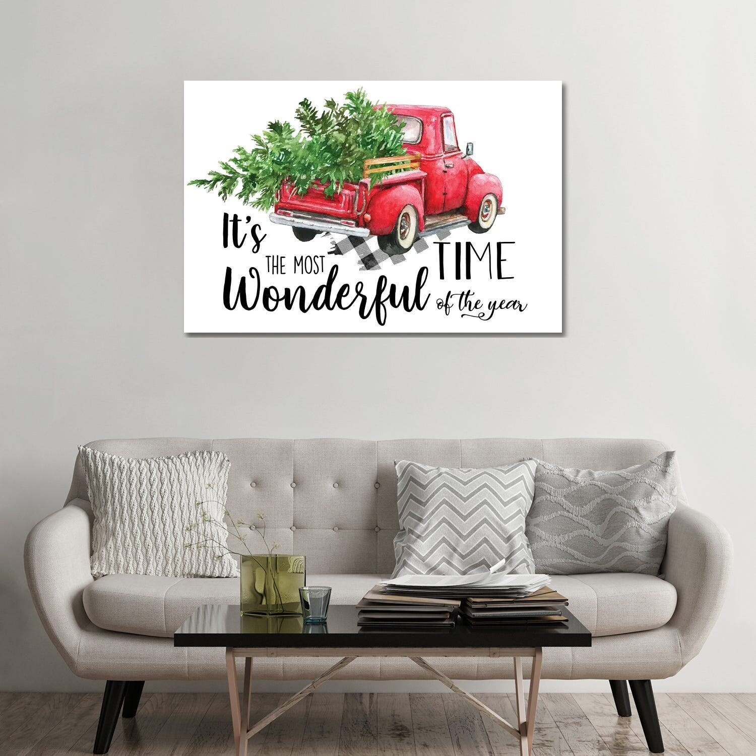 iCanvas "Red Christmas Truck" by Ephrazy Graphics Canvas Print