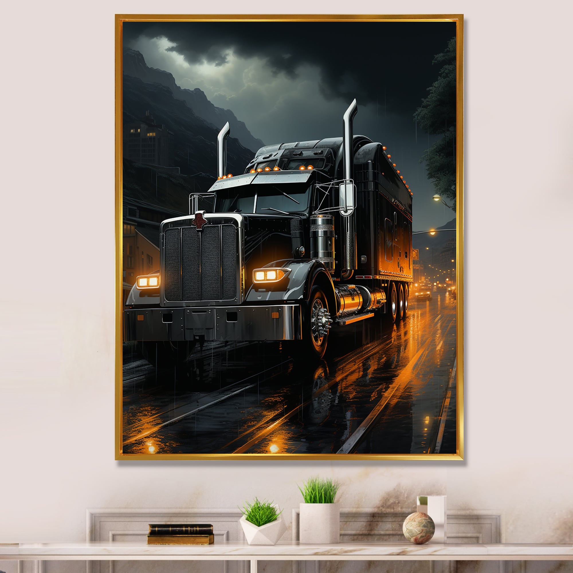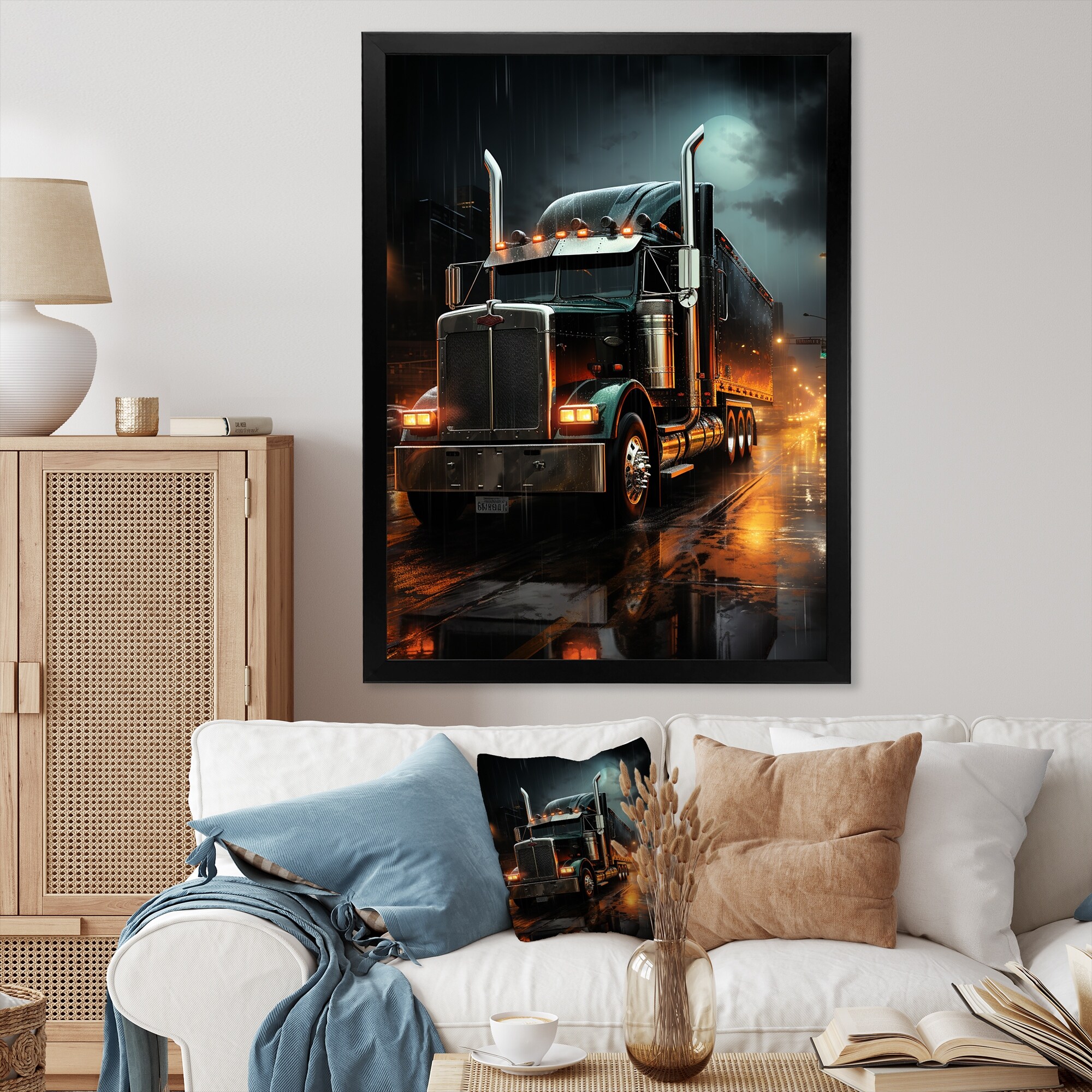 Designart "Midnight Cruiser Semi Truck II" Truck Framed Wall Art Living Room